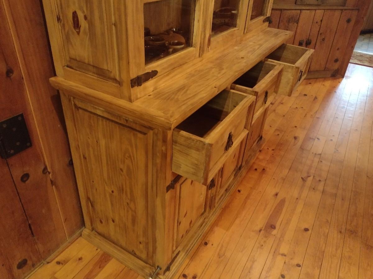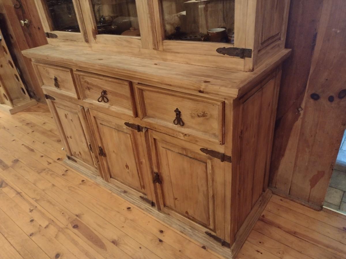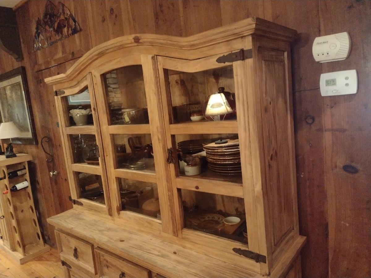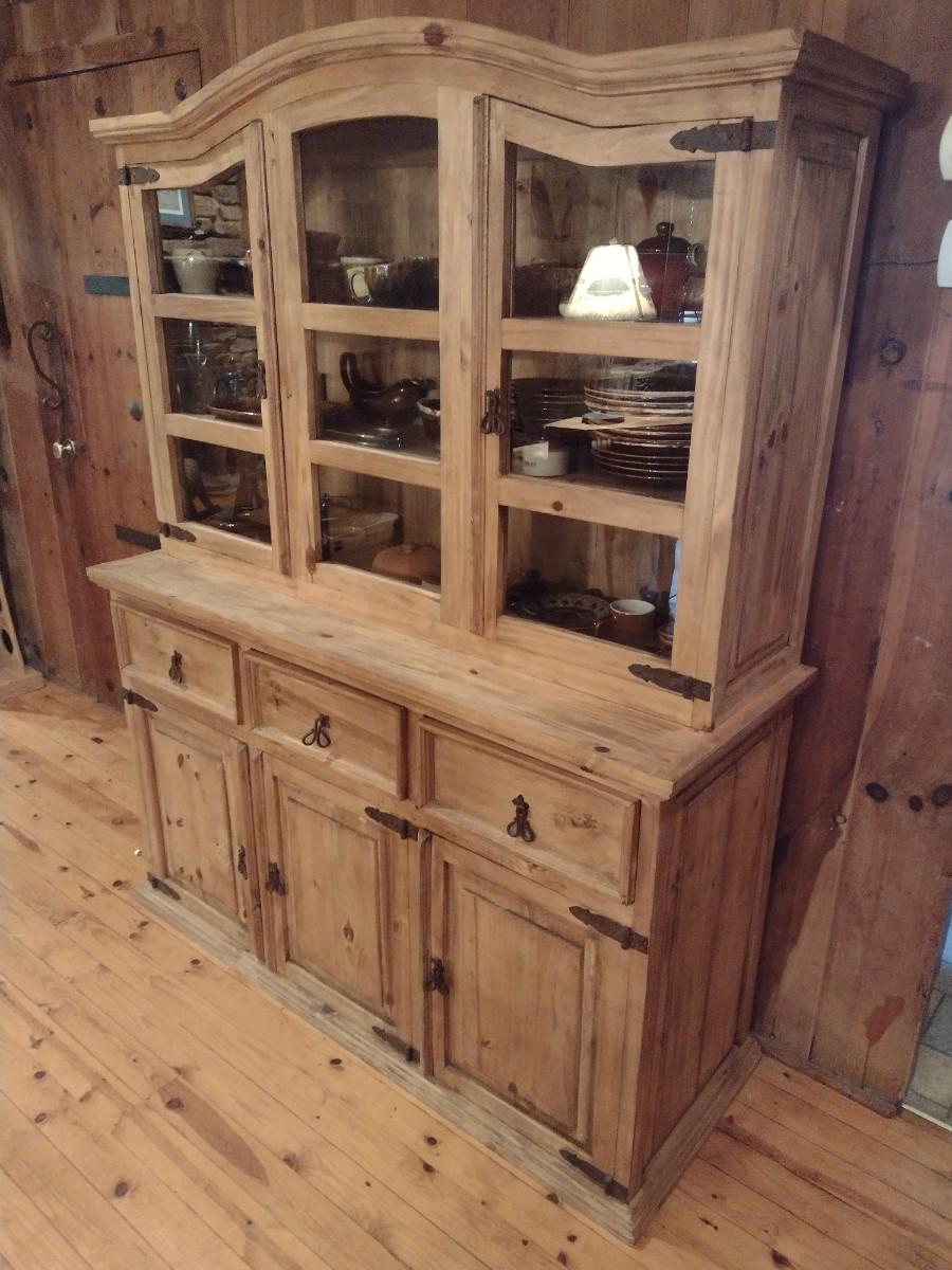 Custom Solid Natural Wood Two Piece Display Hutch (No Contents) PLEASE NOTE:. Due to no internet connection or wireless service, all invoices must be prepaid via PayPal, Stripe, or Zelle prior to arrival at pick up. Exact change cash onsite is acceptable but absolutely no debit or credit cards at time of pick up.
