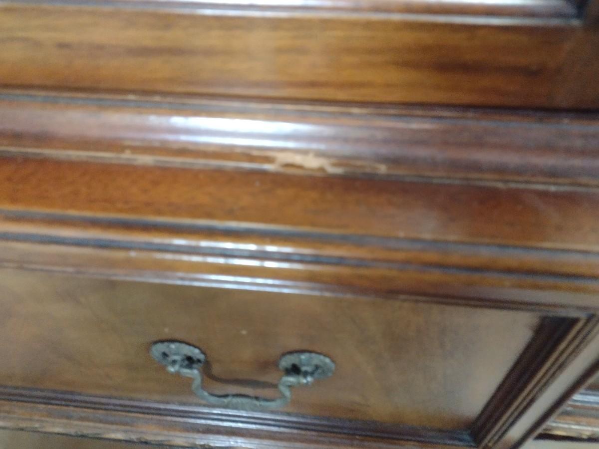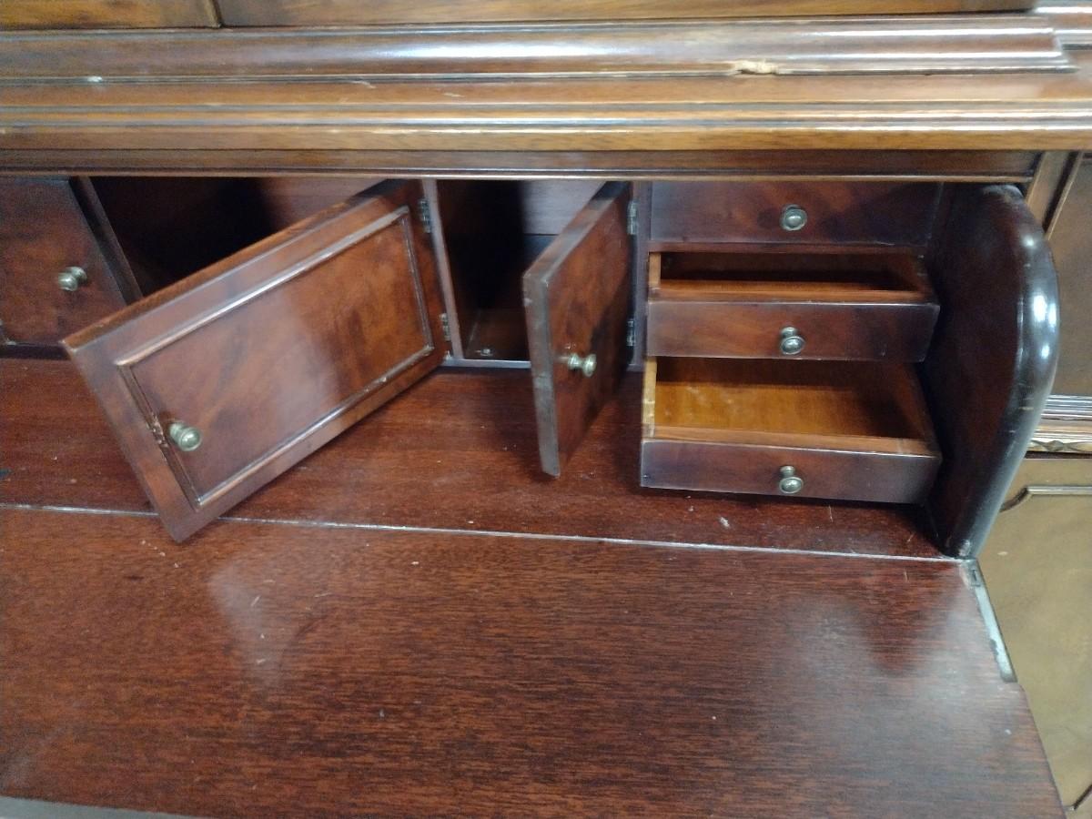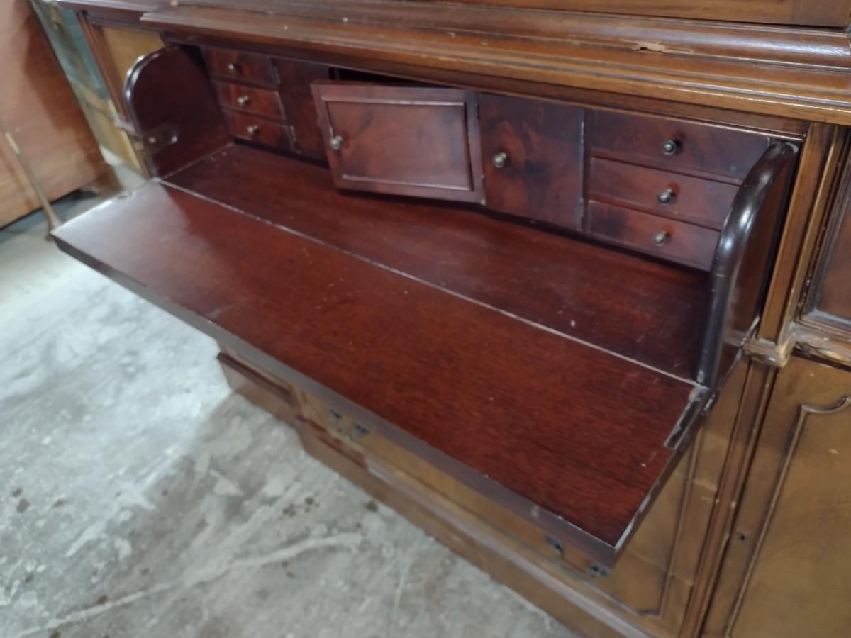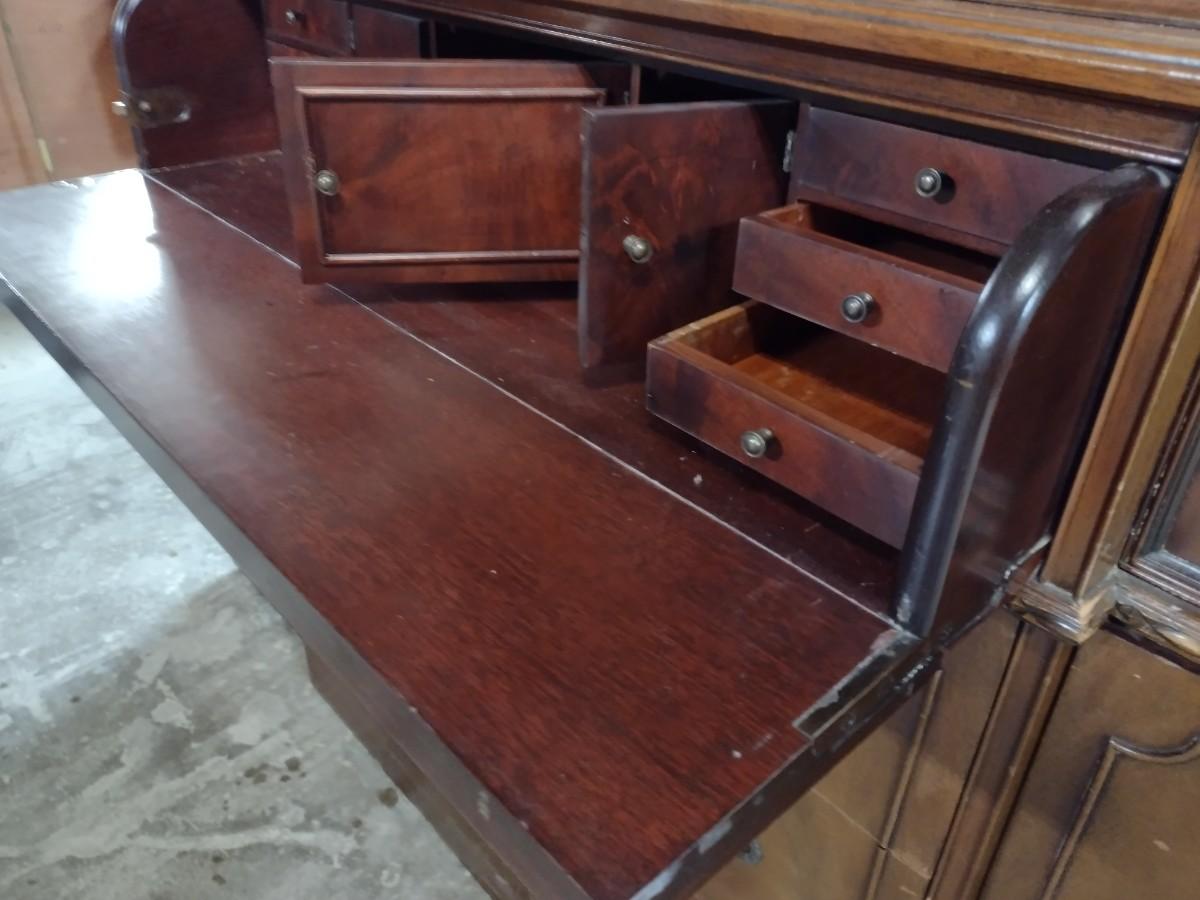 Antique Burl Wood Finish Hutch with Pull Out Secretary Drawer