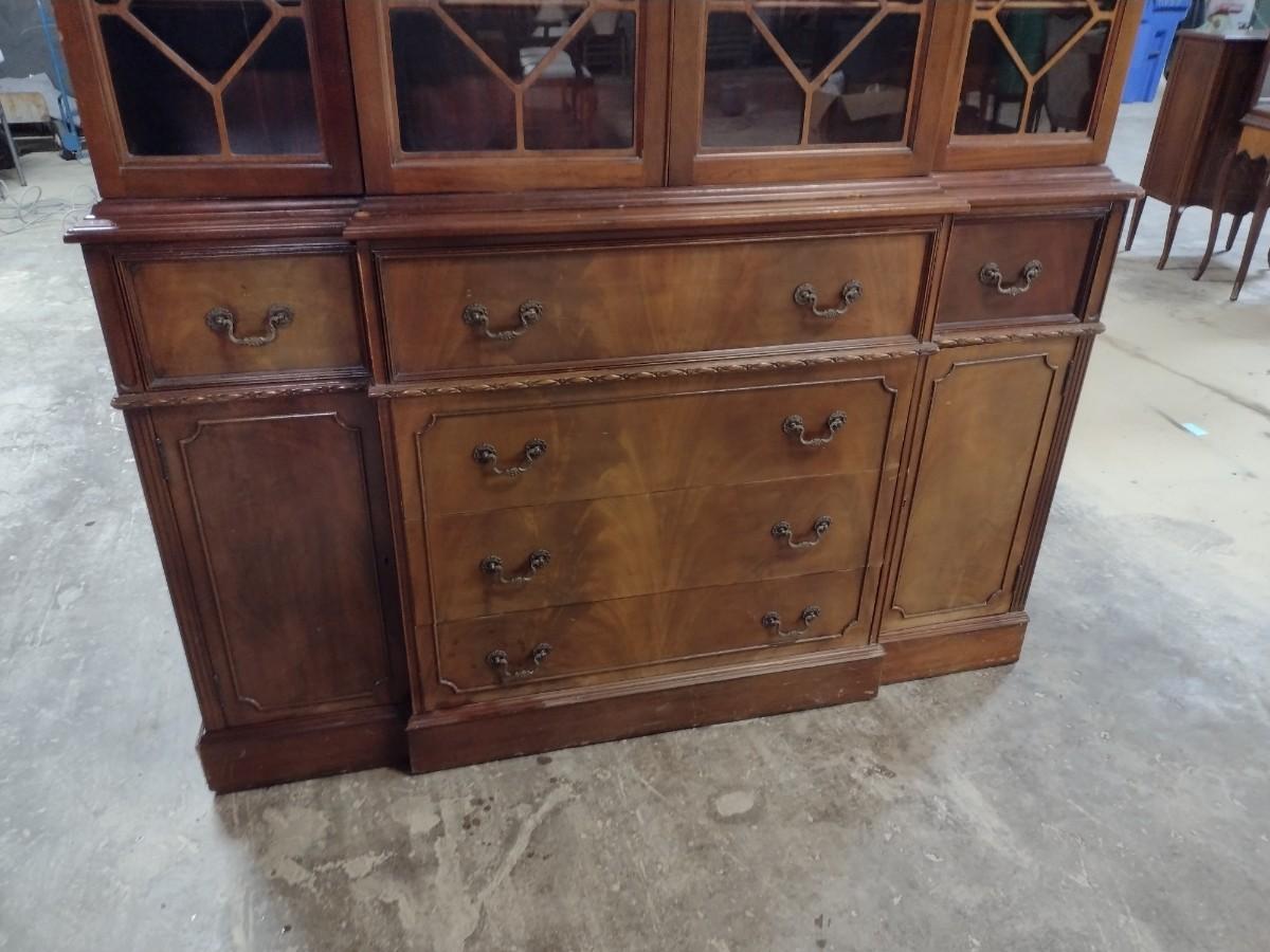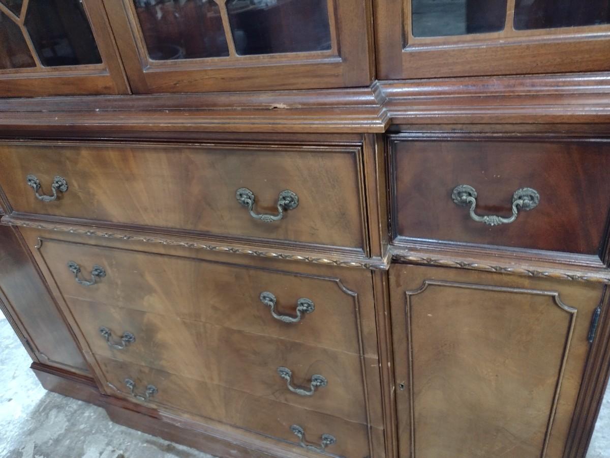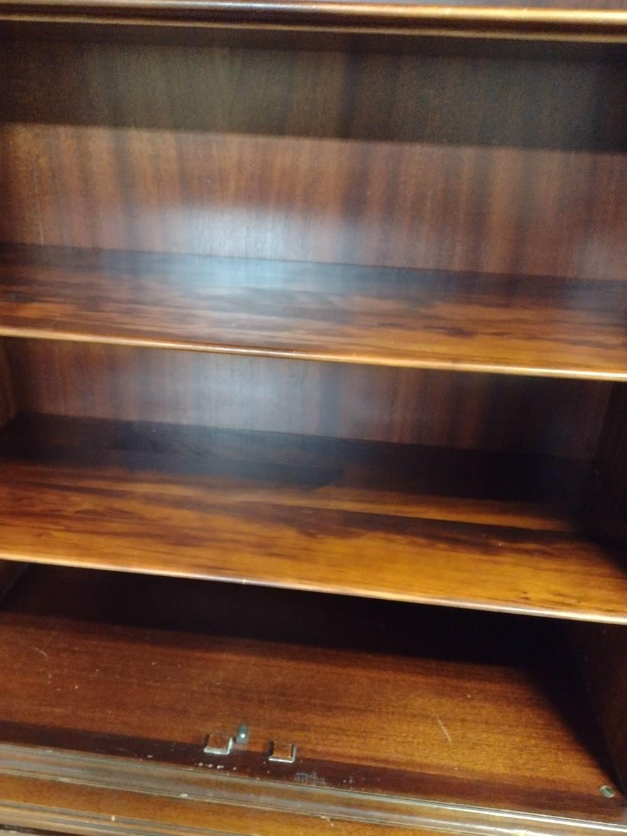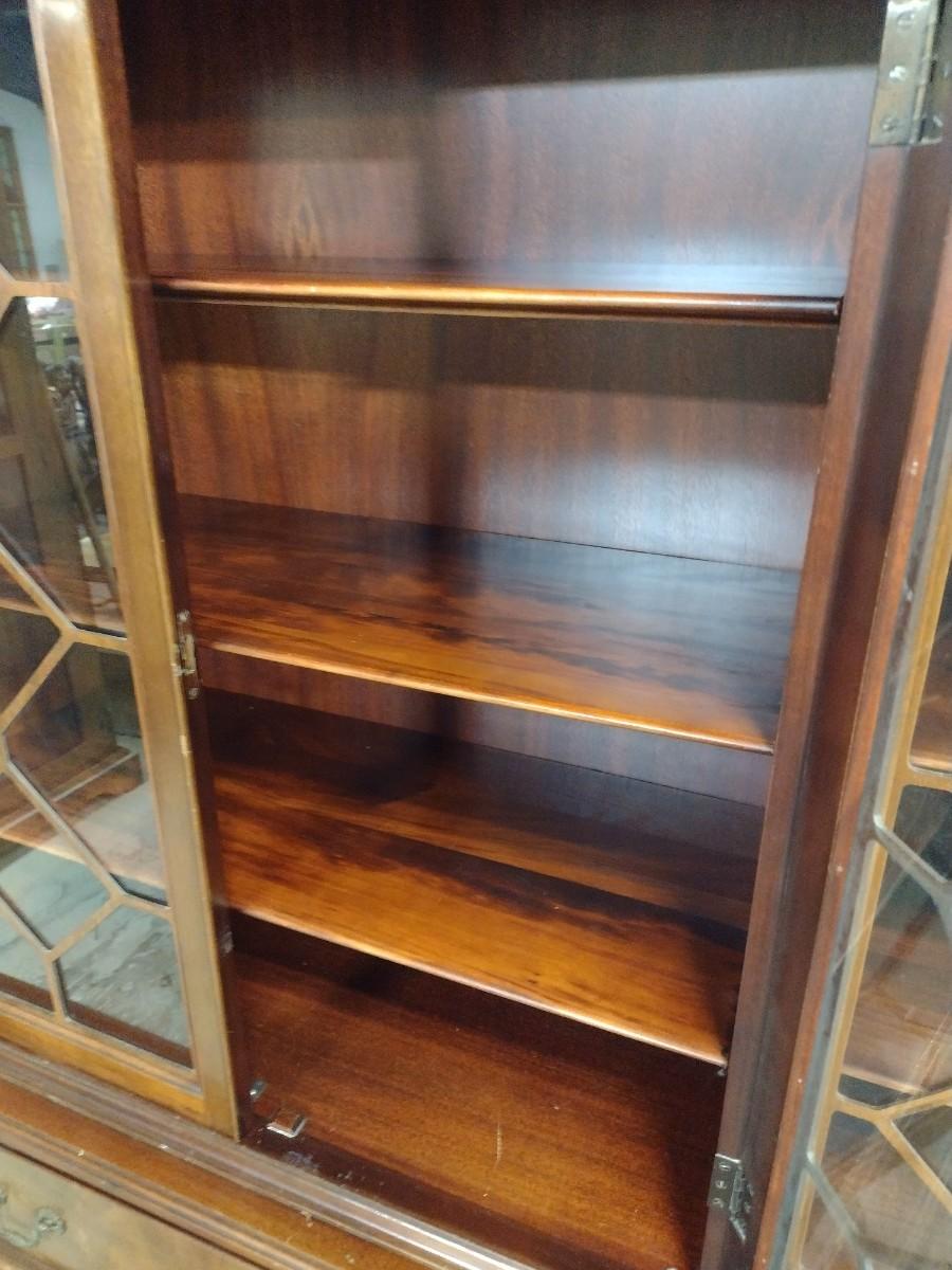 Antique Burl Wood Finish Hutch with Pull Out Secretary Drawer