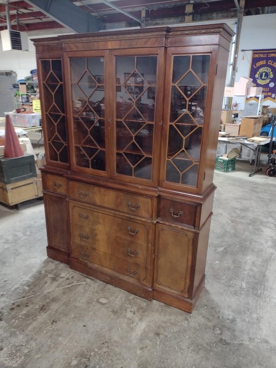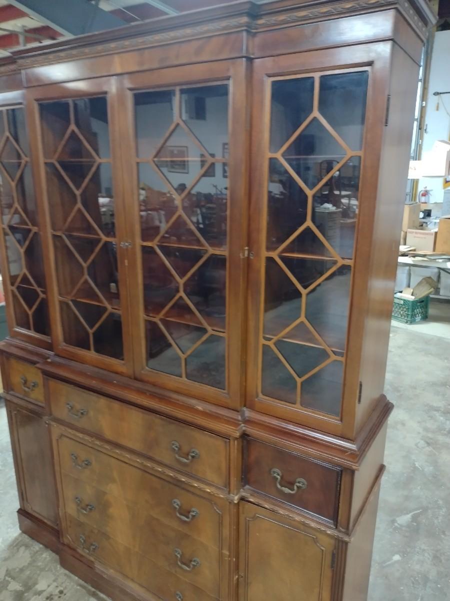 Vintage Drexel Heritage Burl Wood Finish Hutch with Pull Out Secretary Drawer