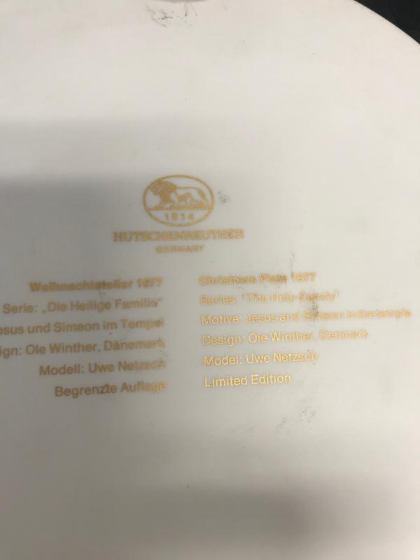 Description: Hutschenreuther Christmas 1977 "The holy-family" white & giltplate. Measurement approximate: 8.5 W Material: Porcelain. Shipping cost $18 Excluding California, Alaska & Hawaii.