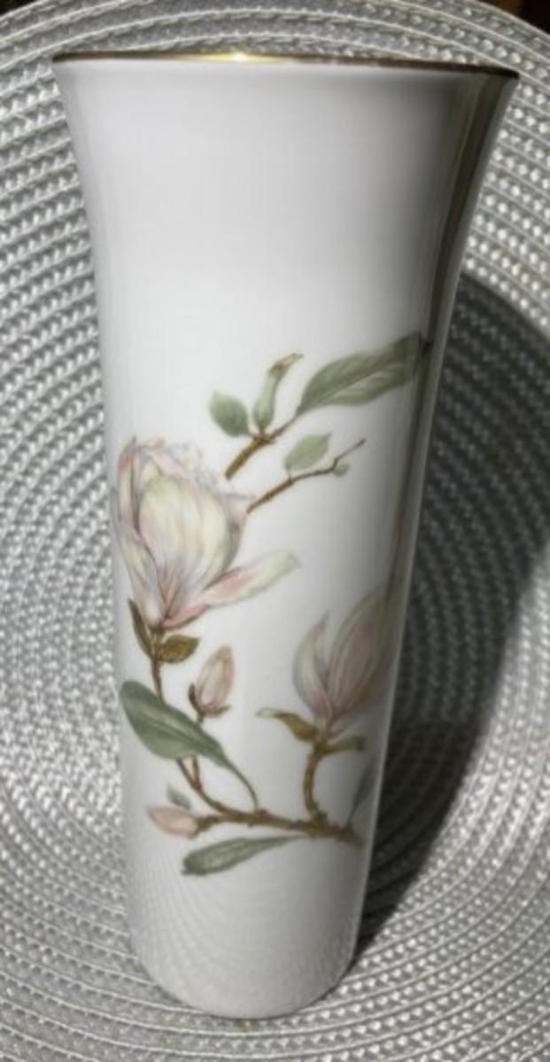 Hutschenreuther Selb #7955 Germany Porcelain Floral Vase 8" Tall in Good Preowned Condition.