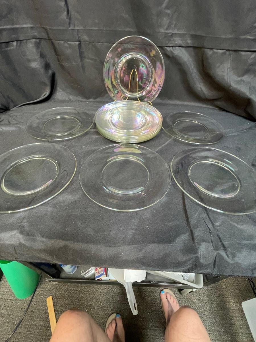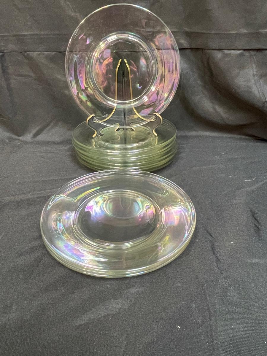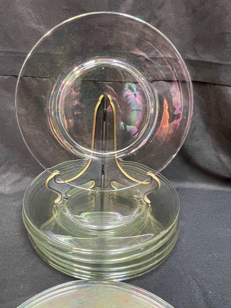 Vintage Clear Glass Iridescent Finish Salad Small Dinner Plates
