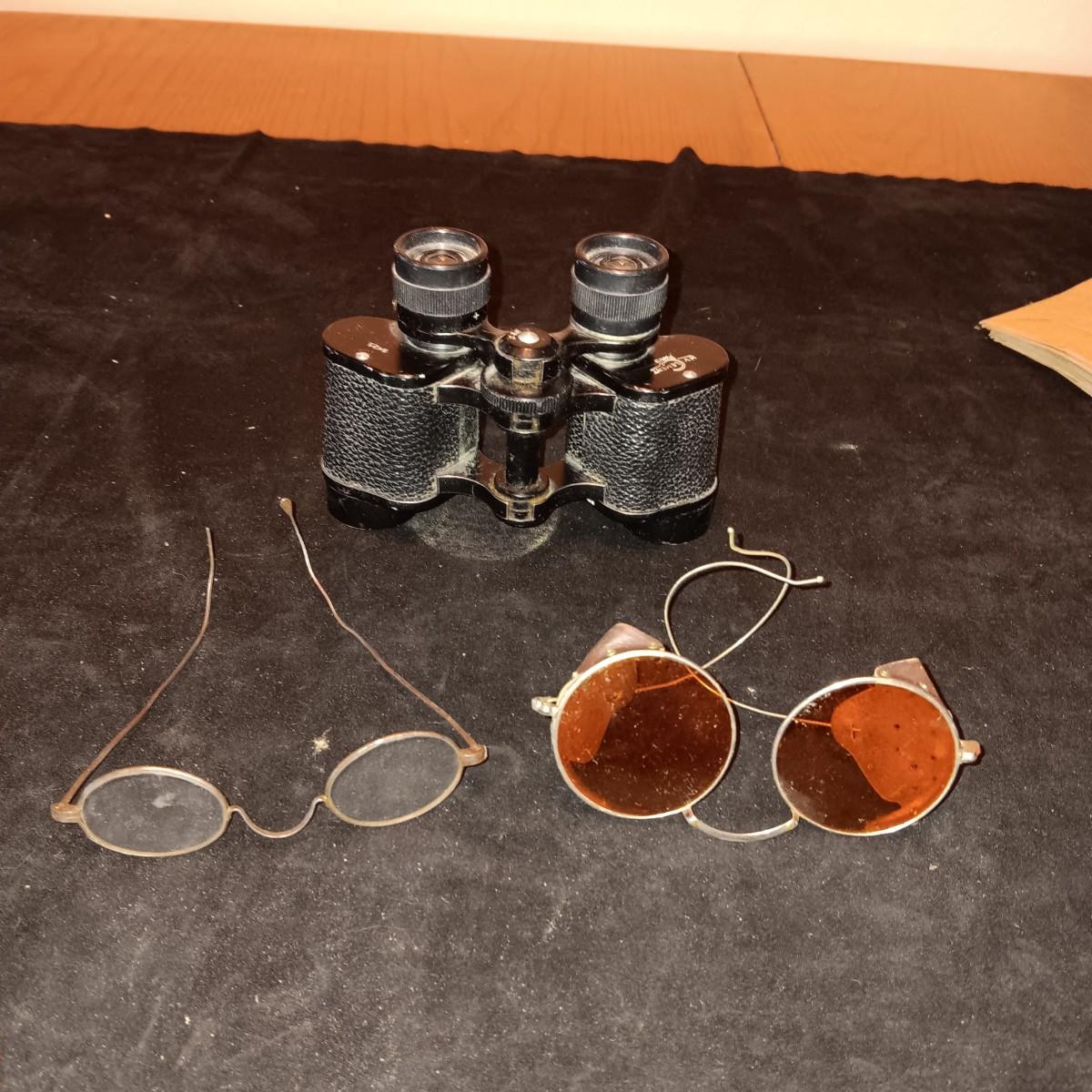 HV CLEMENT BINOCULARS 8X25 AND OLD WELDING & EYE GLASSES