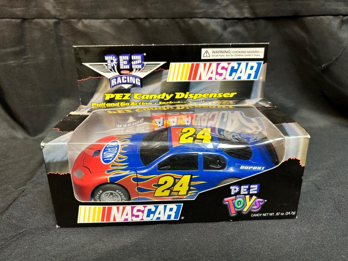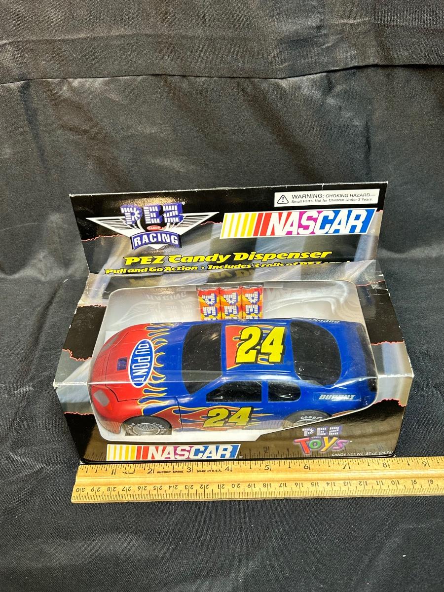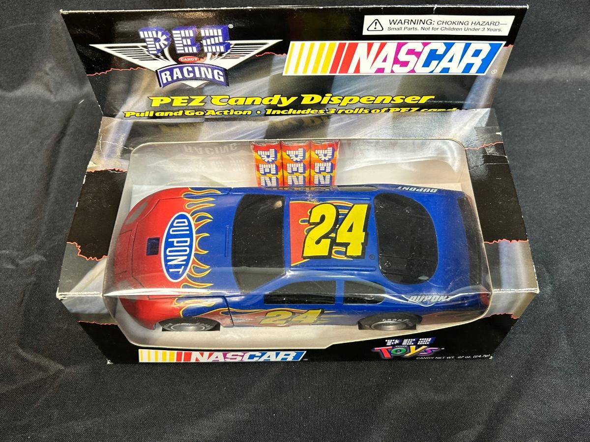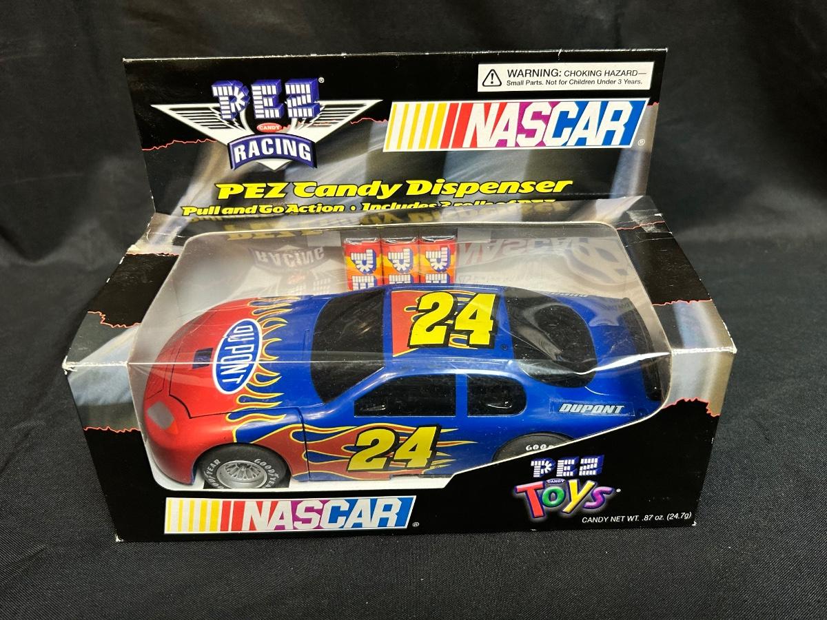NASCAR Jeff Gordon #24 Dupont Race Car Pez Dispenser in Original Box. In good condition. Has PEZ candy inside but they are old. Dated 2005 on box.