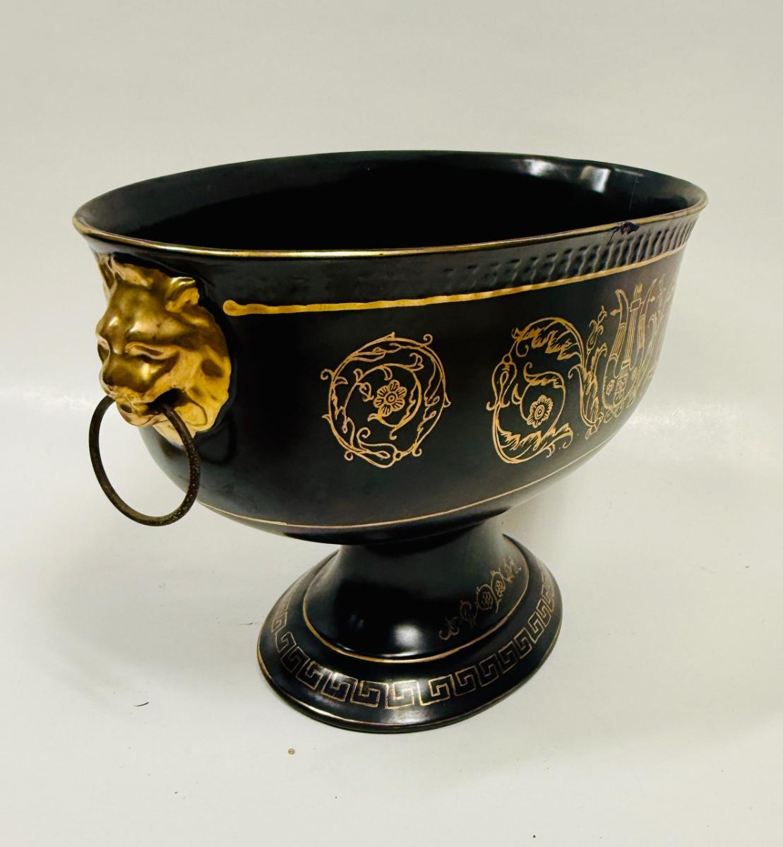 Noritake Lusterware Decorative Bowl Black with gold painted highlights Lion Head Handles