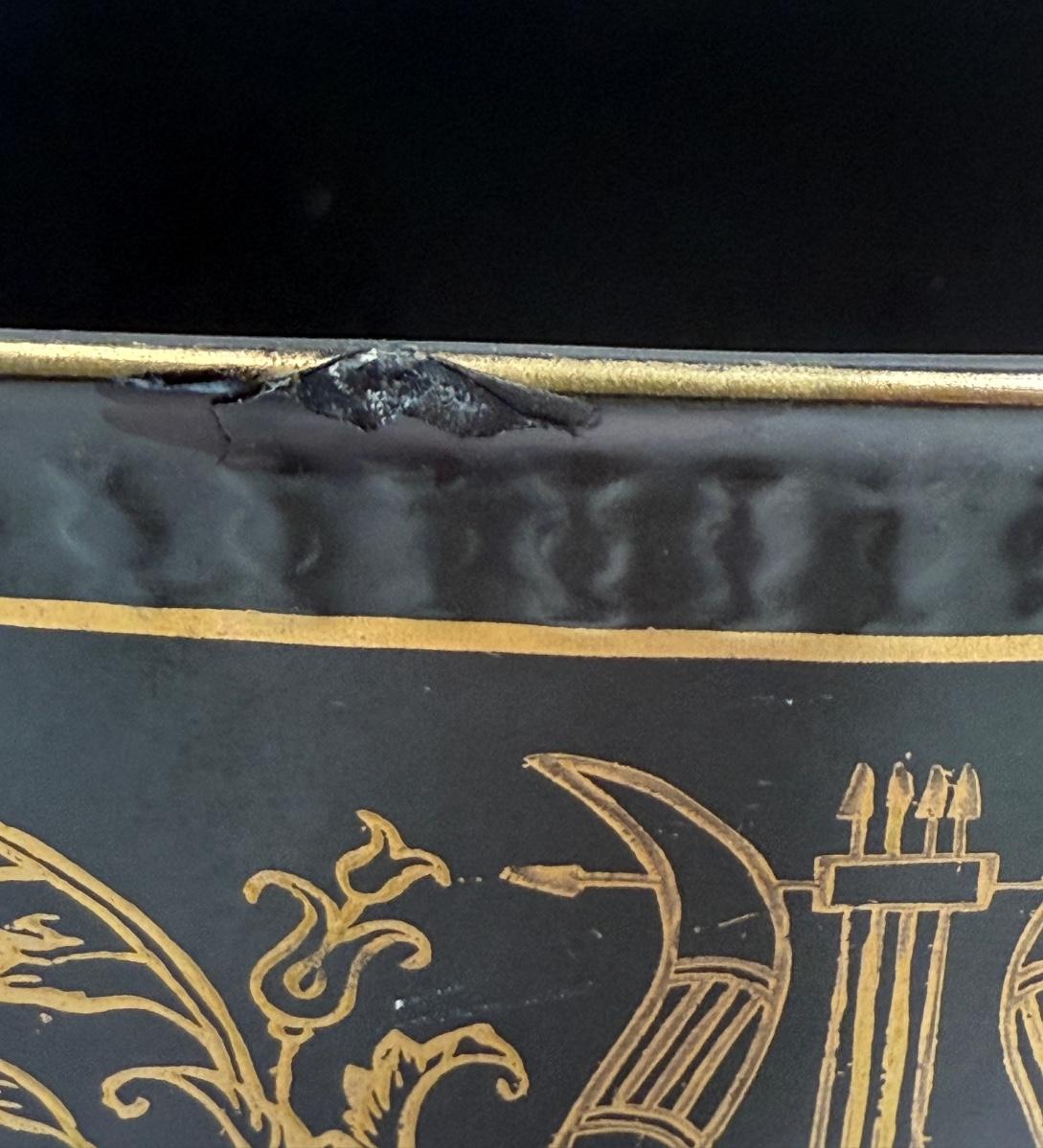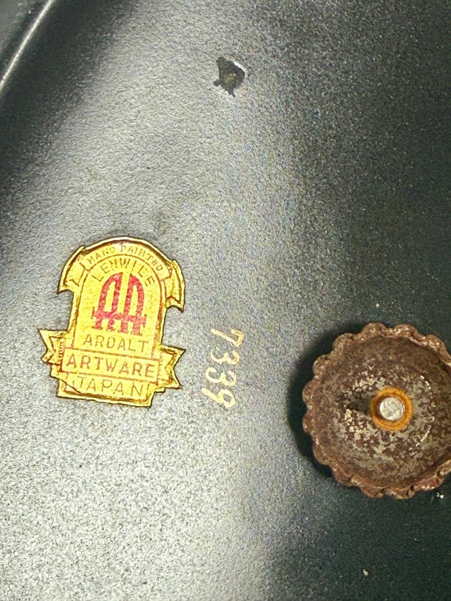 Ardalt Artwork of Japan Decorative Bowl black with handprinted gold accents label still attached It has tiny crack inside and a little ding on the rim - shown in pictures,