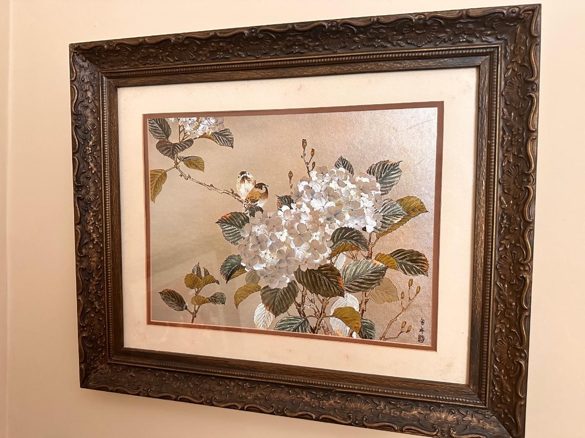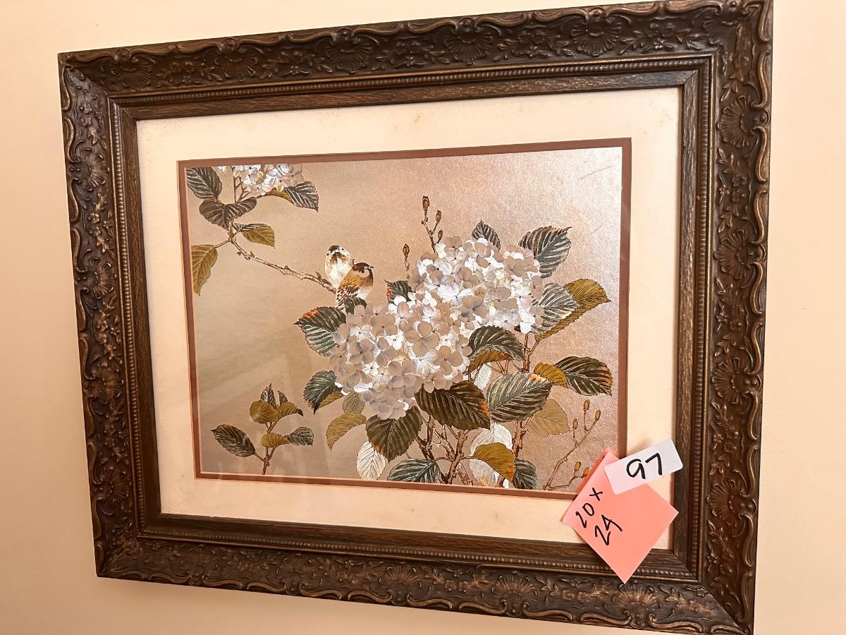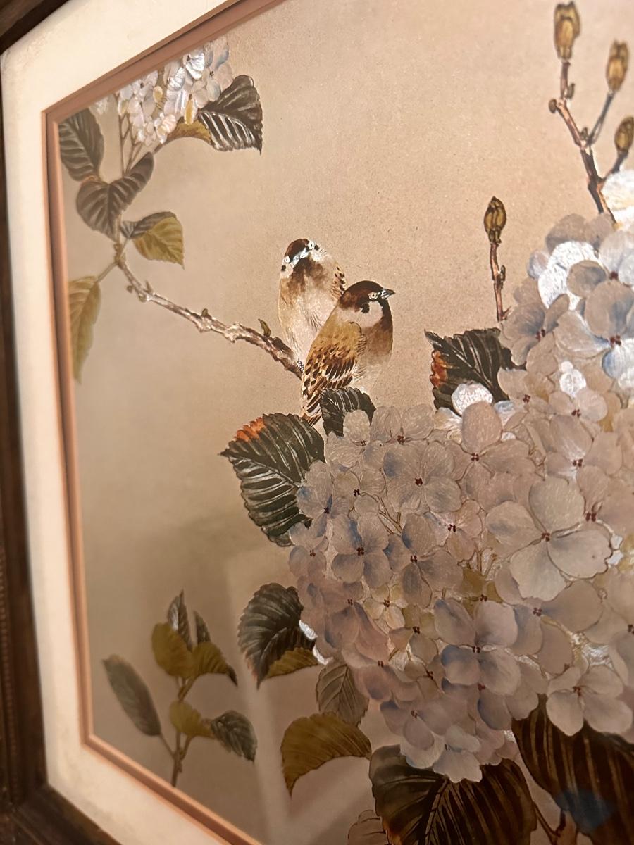 Hydrangea and Bird Framed Print 20x24