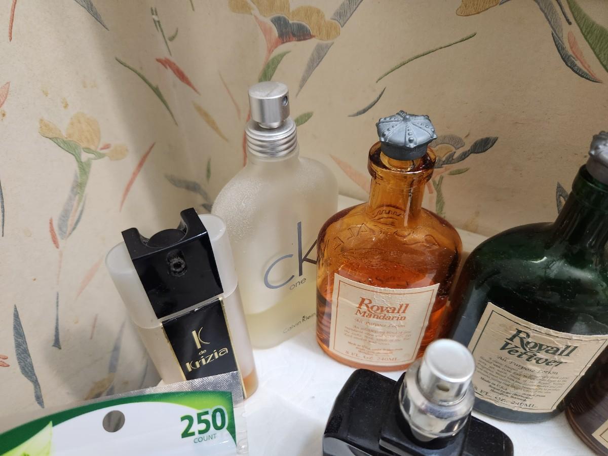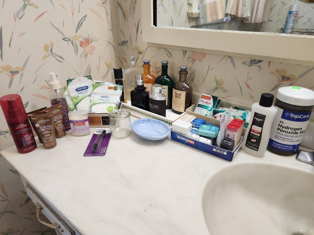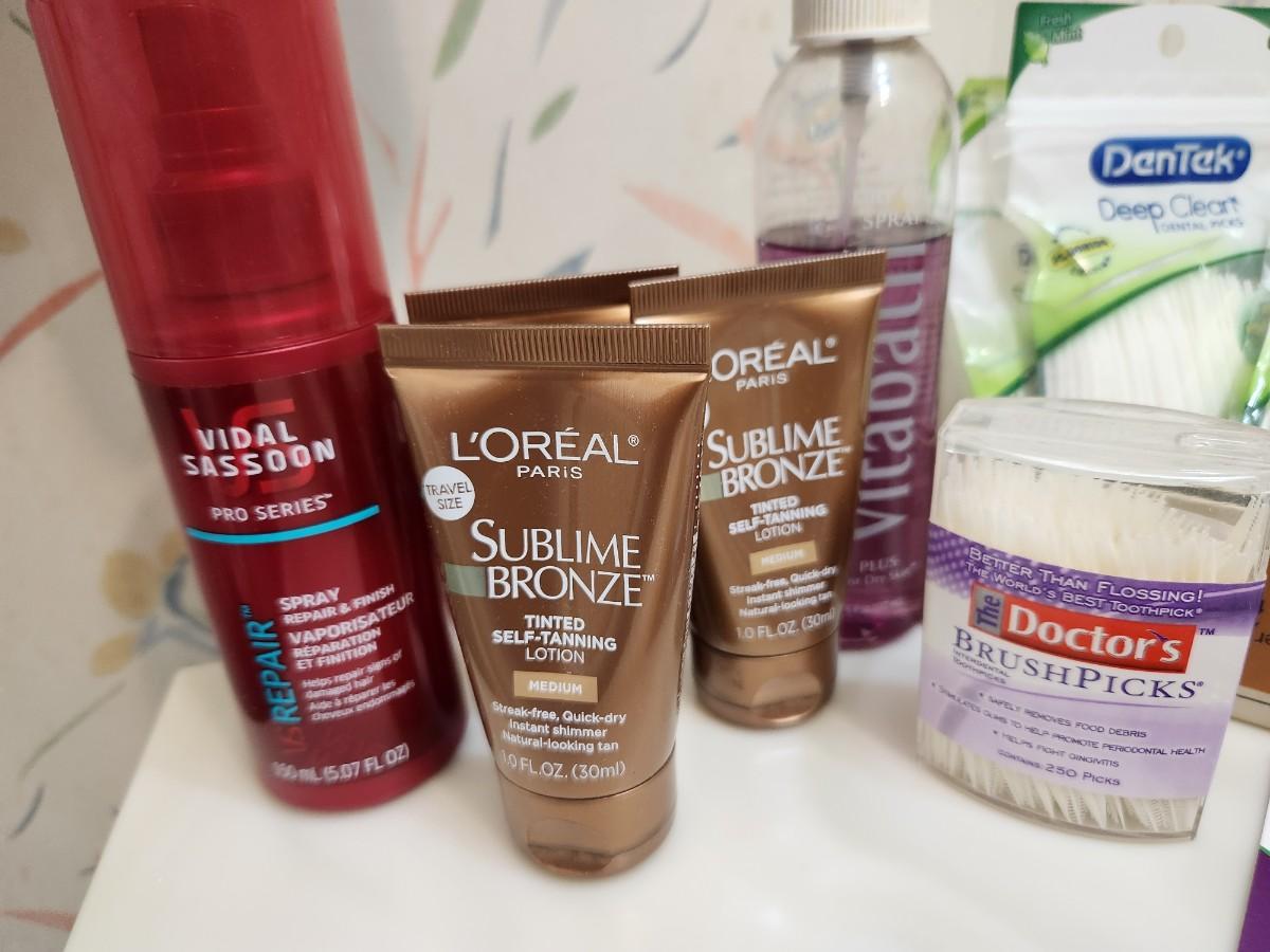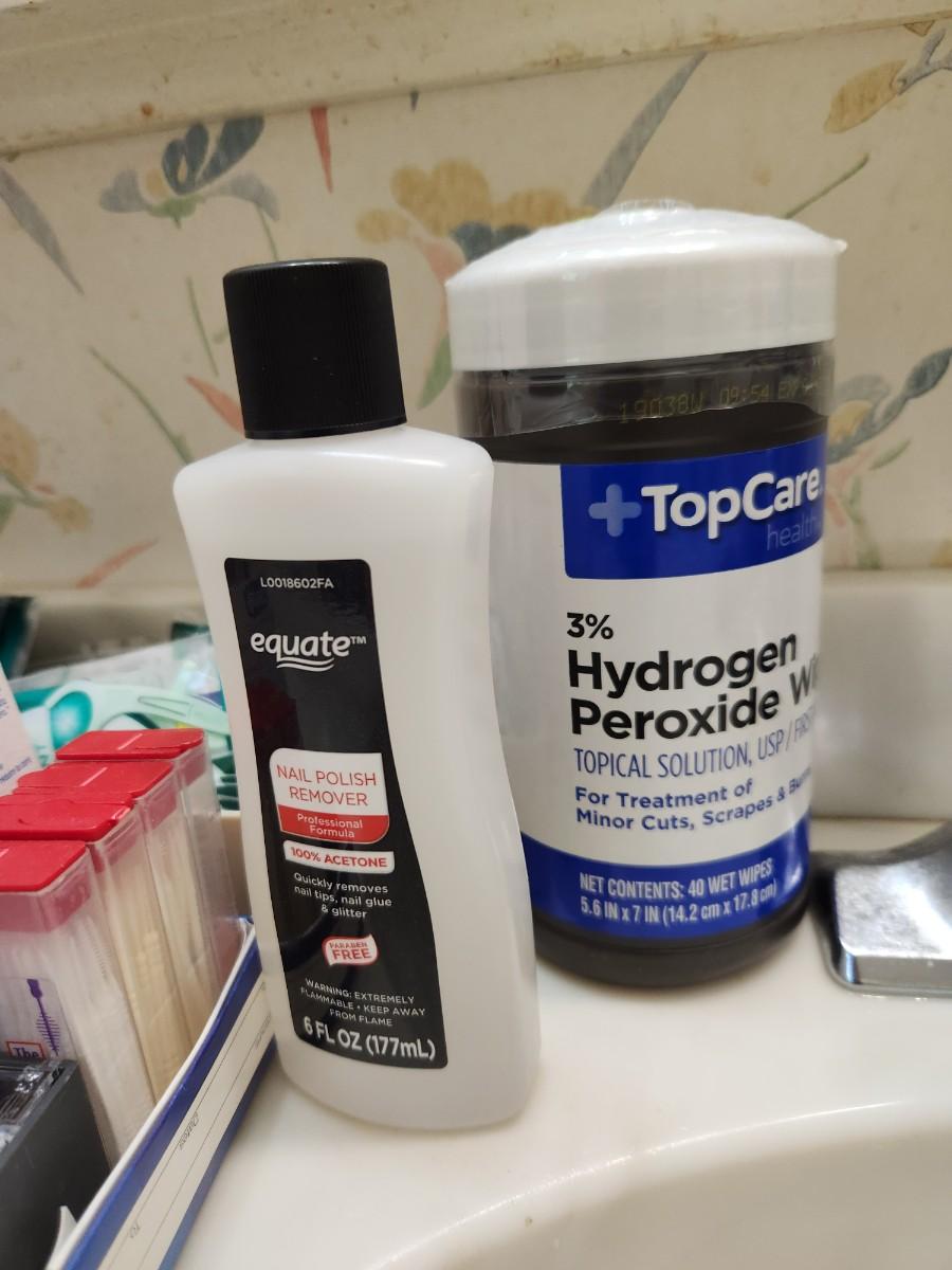 Tooth Picks, cologne, floss, hydrogen peroxide, nail polish remover, tanning lotion and hair spray.