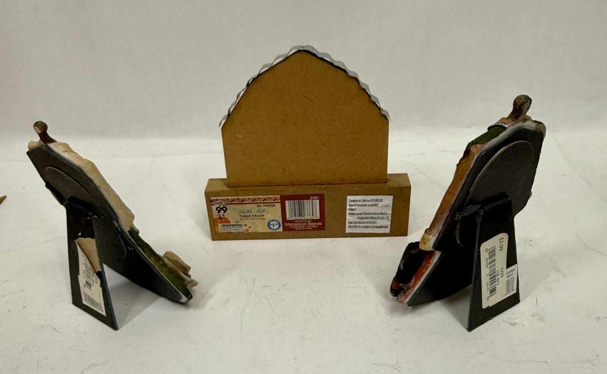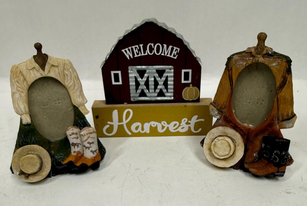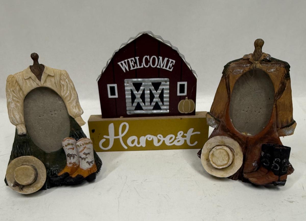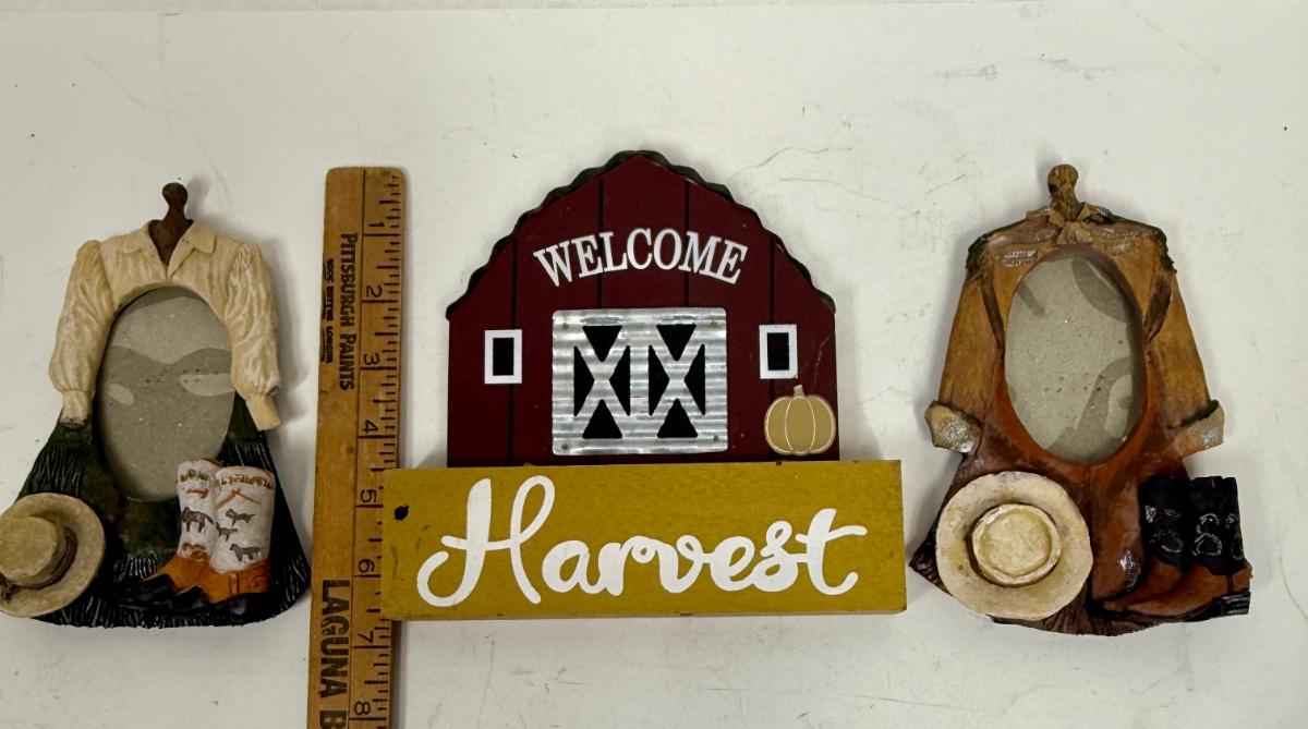 2 pic ture frames, approx. 6" tall, for a small oval photo. Decor sign is approx. 7" tall.