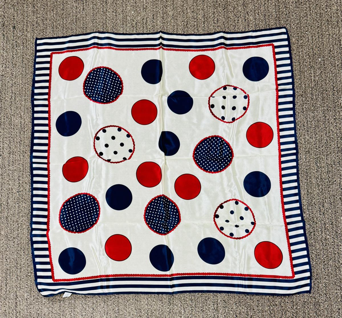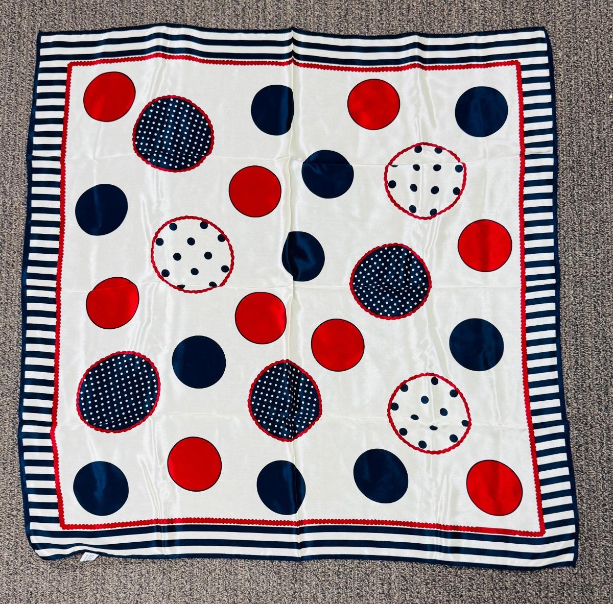 Scarf is 100% silk, and is a square measuring approx. 32" x 32". Great condition, made in Japan.