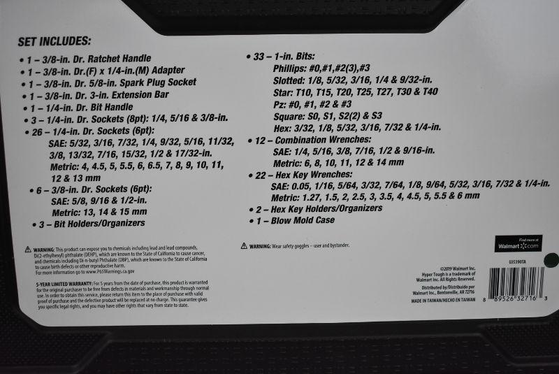 Hyper Tough 113 Piece Mechanics Tool Set UJ5390TA - New
