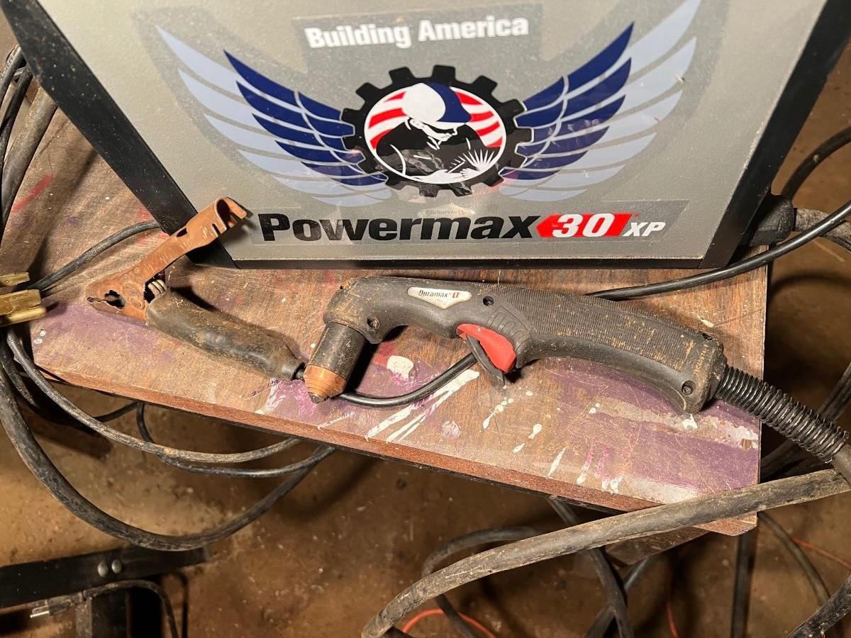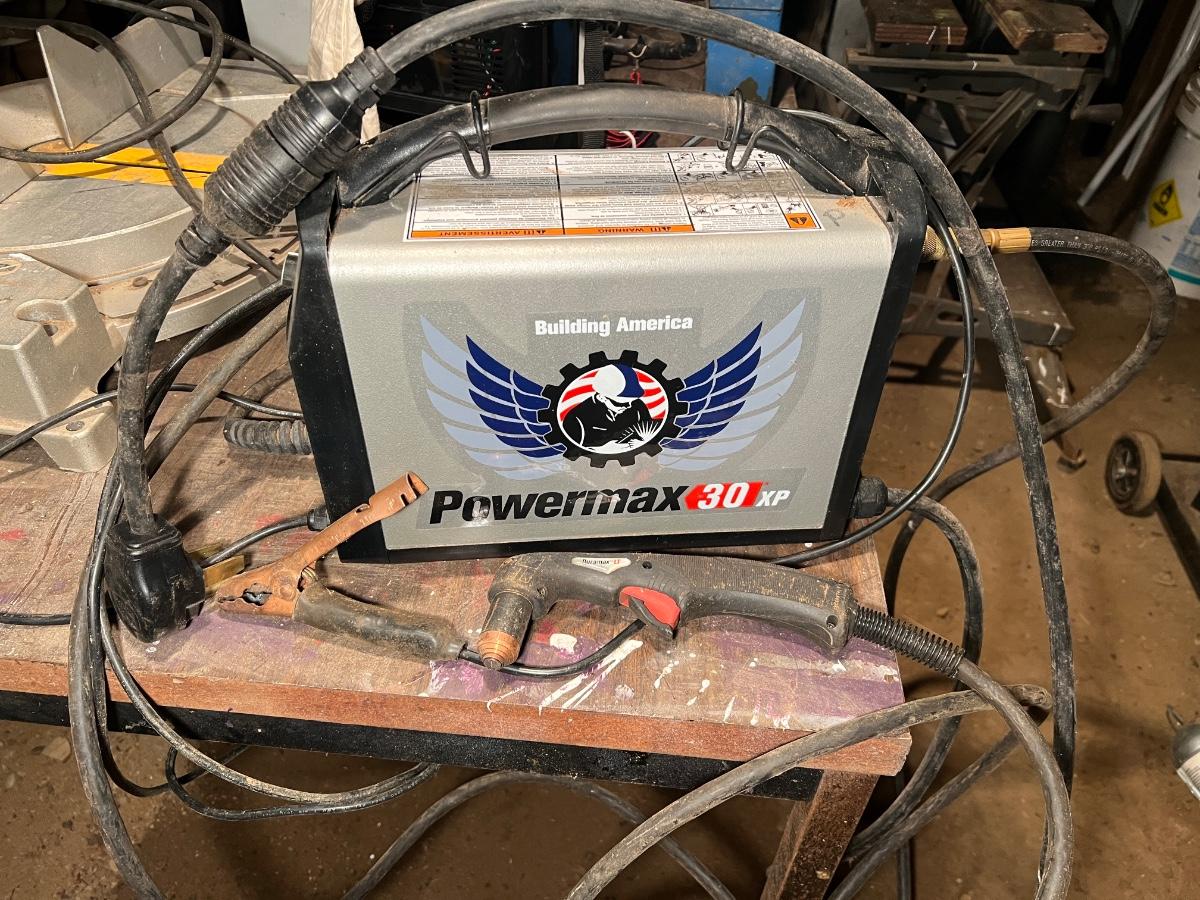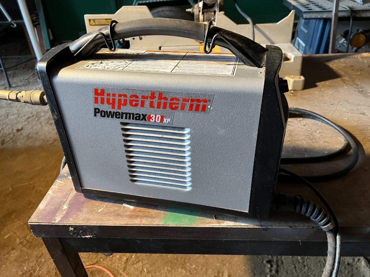 Hypertherm Powermax 30 XP Plasma Cutter (including attached cables/attachments shown in images). From a Redmond estate, where it was stored in a covered outbuilding. In good condition.