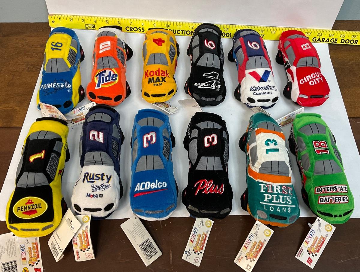 Vintage Lot of Nascar Beanie Plush Race Cars - 12 pcs