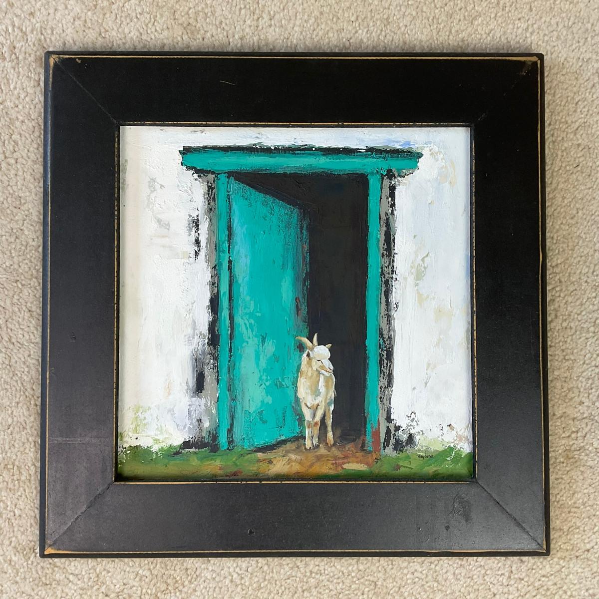 HZ300 Original Painting By Naydene Gonnella "Goat With Green Door"