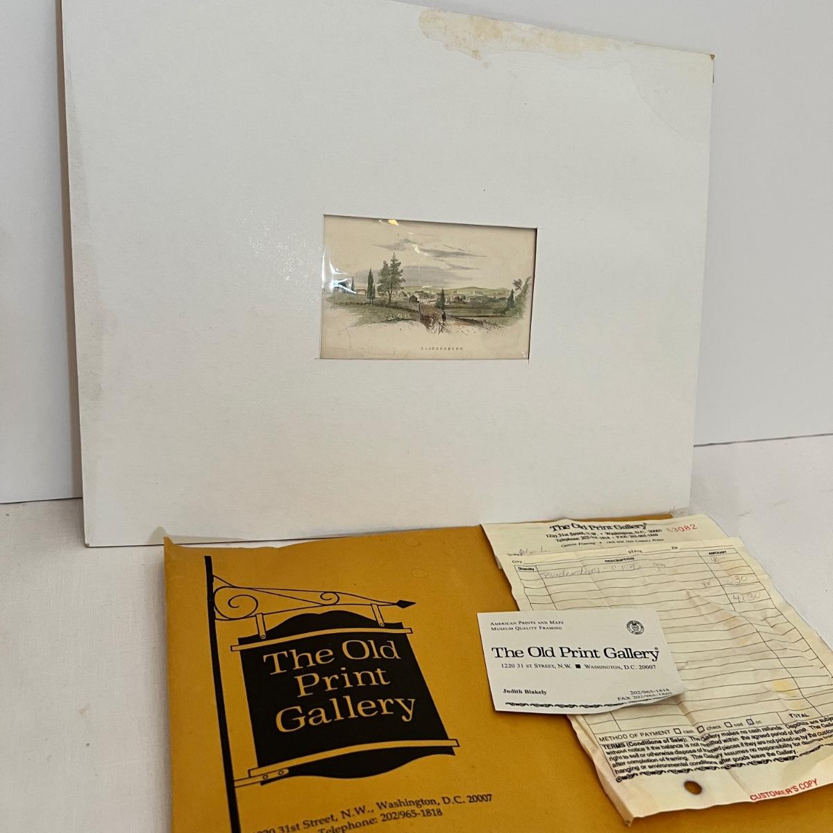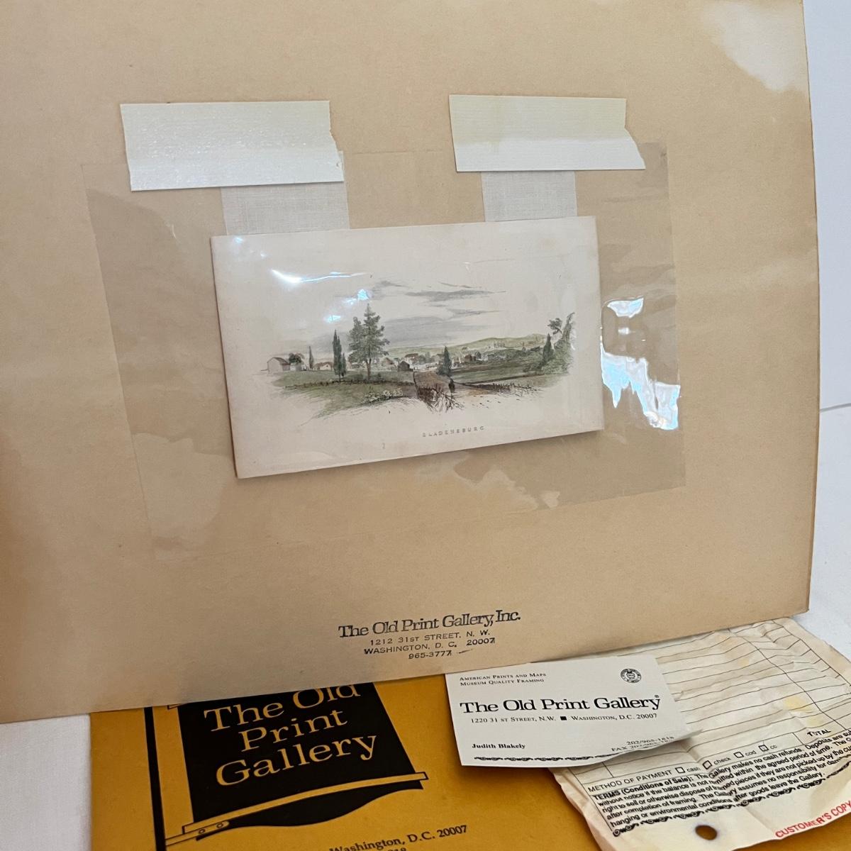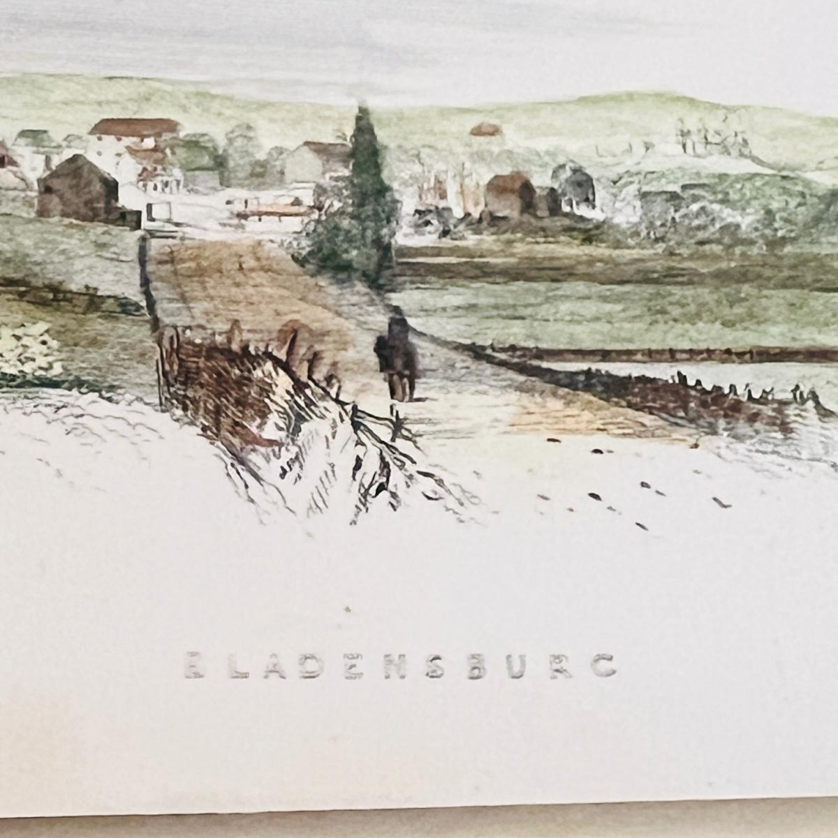 Purchased in the 1990's from The Old Print Gallery. Antique print from the book Picture of Washington, and Its Vicinity, for 1850. Washington: William Q. Force, 1850. "Visitors to Washington were ready customers for guide books describing the various attractions of the city and its surroundings. An early example is Force’s Picture of Washington, which has two page of text on Bladensburg, its dueling ground, and an engraved image showing the quaint village as one would see it on the approach from Washington."
