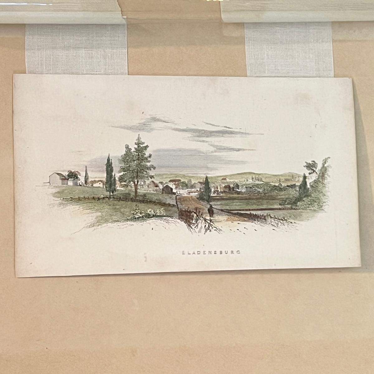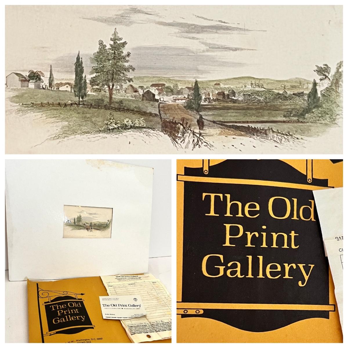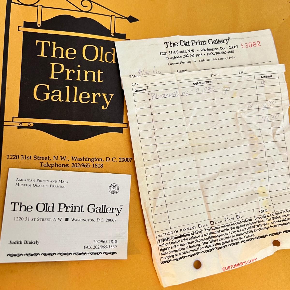 Purchased in the 1990's from The Old Print Gallery. Antique print from the book Picture of Washington, and Its Vicinity, for 1850. Washington: William Q. Force, 1850. "Visitors to Washington were ready customers for guide books describing the various attractions of the city and its surroundings. An early example is Force’s Picture of Washington, which has two page of text on Bladensburg, its dueling ground, and an engraved image showing the quaint village as one would see it on the approach from Washington."