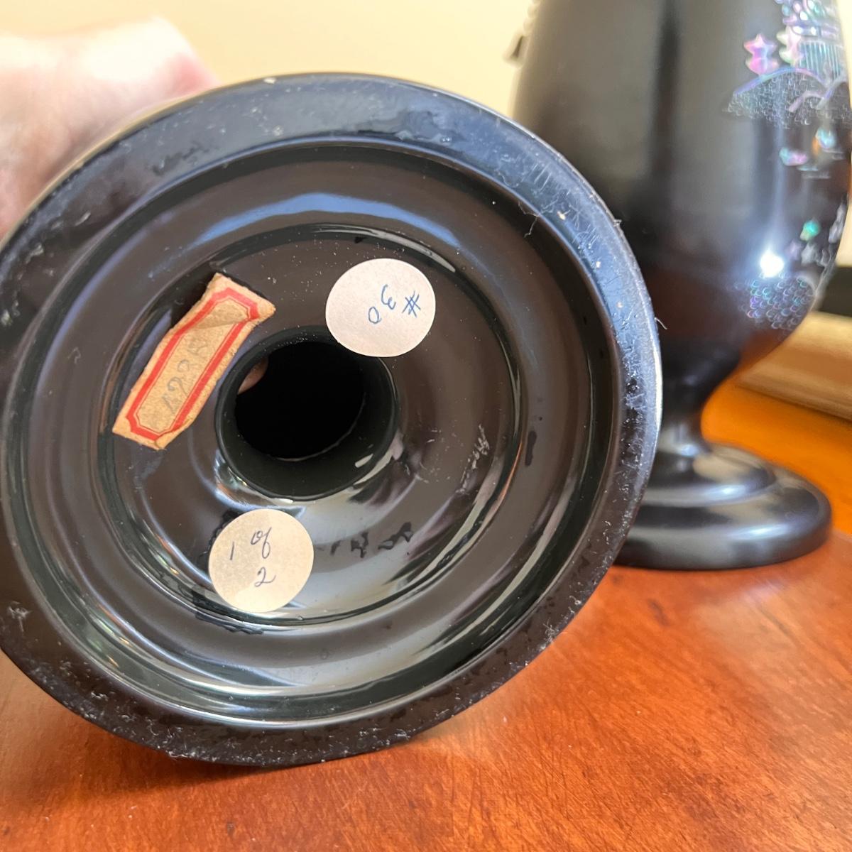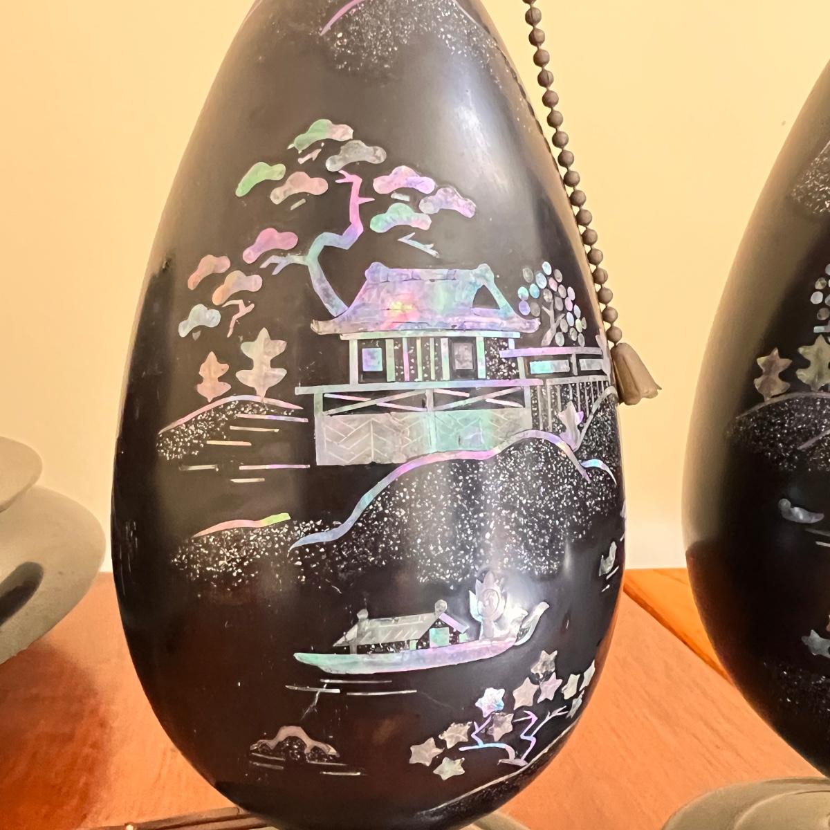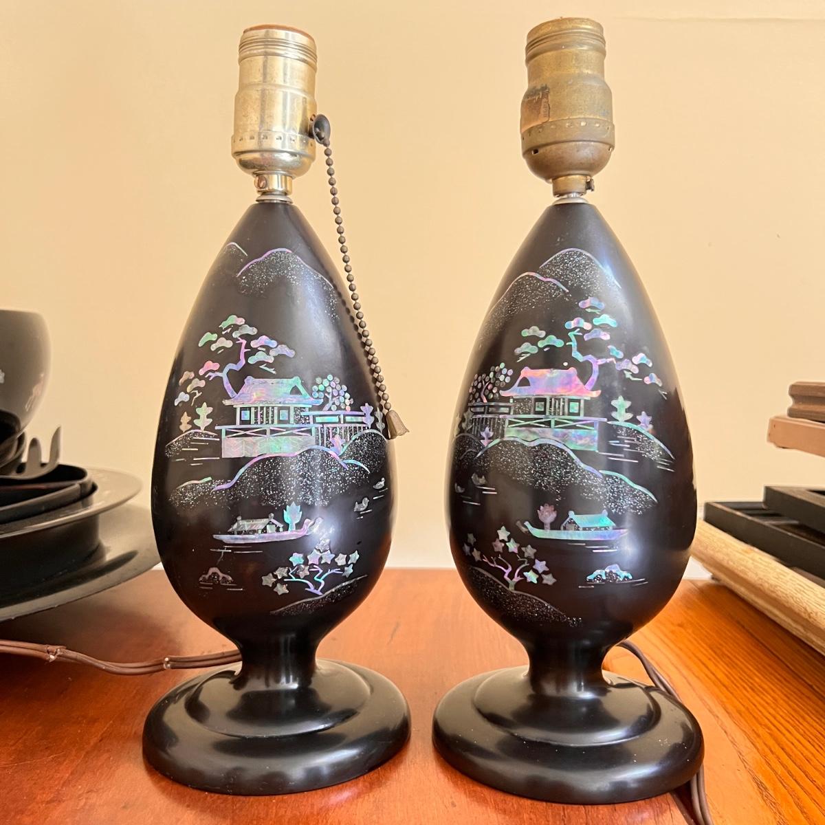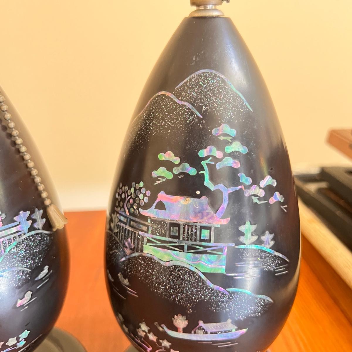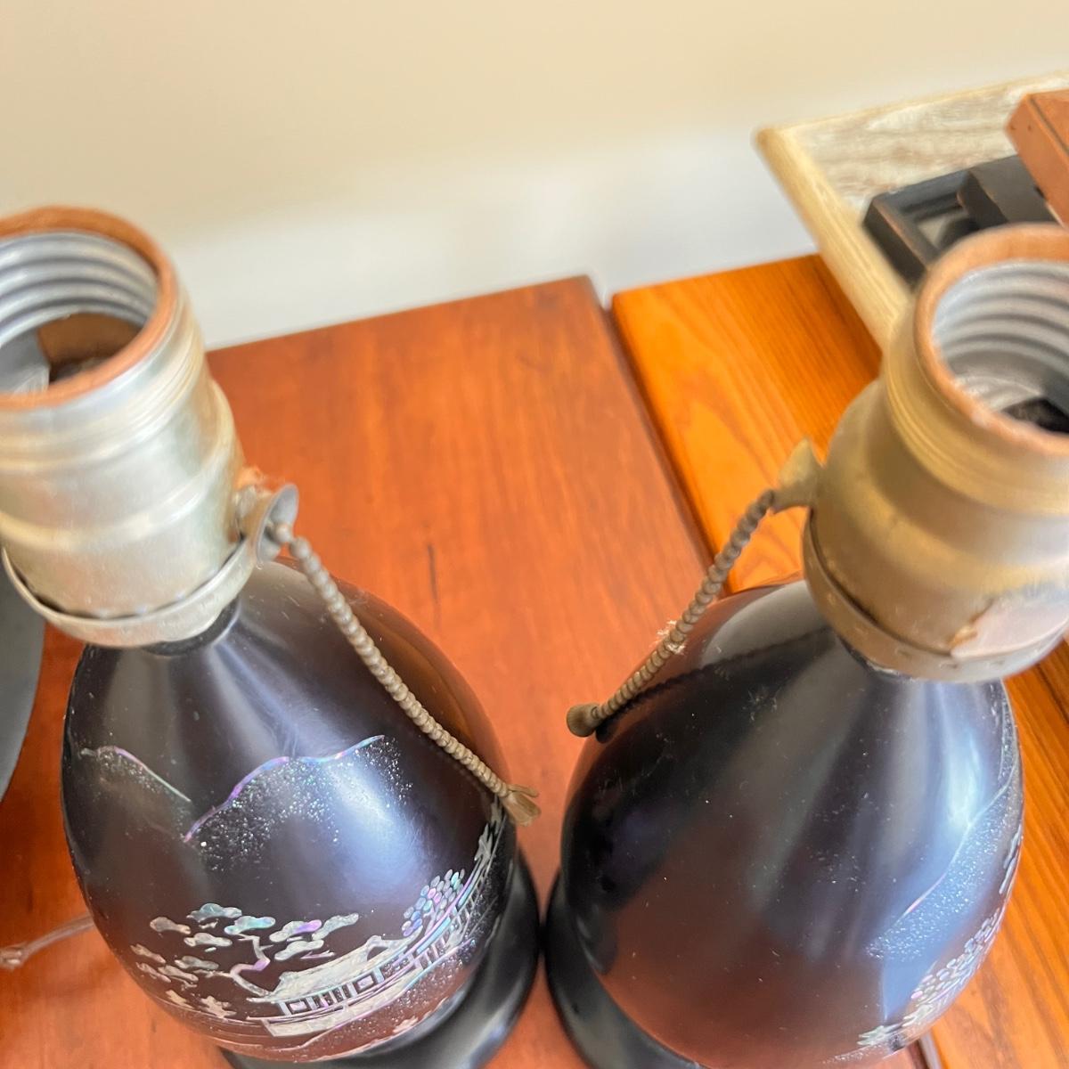 Pair of Vintage Japanese Lacquerware Lamps with Mother of Pearl - Working