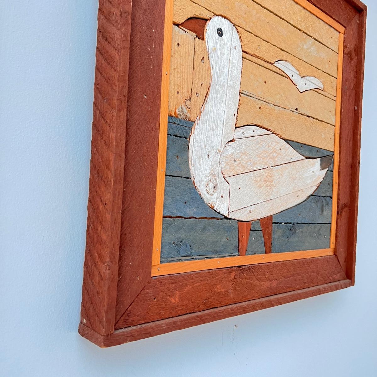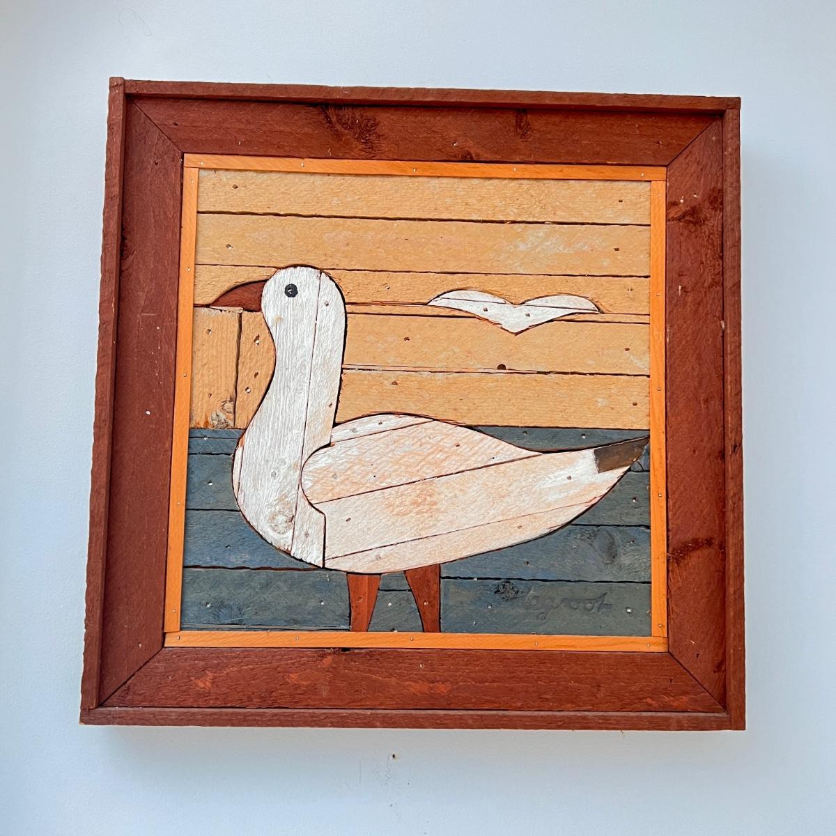 17"x17" wood hanging art of sea birds signed Degroot. Great condition.