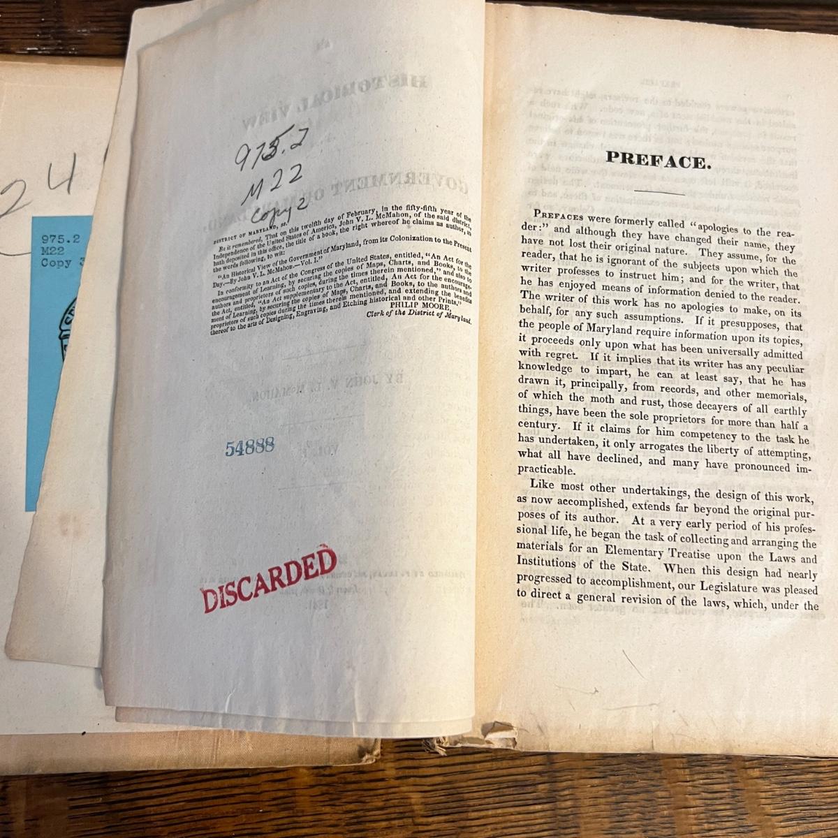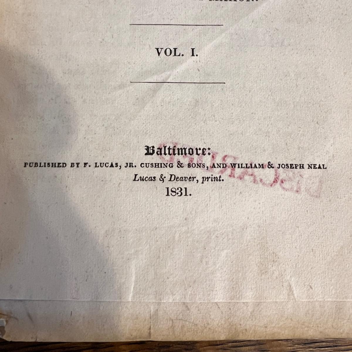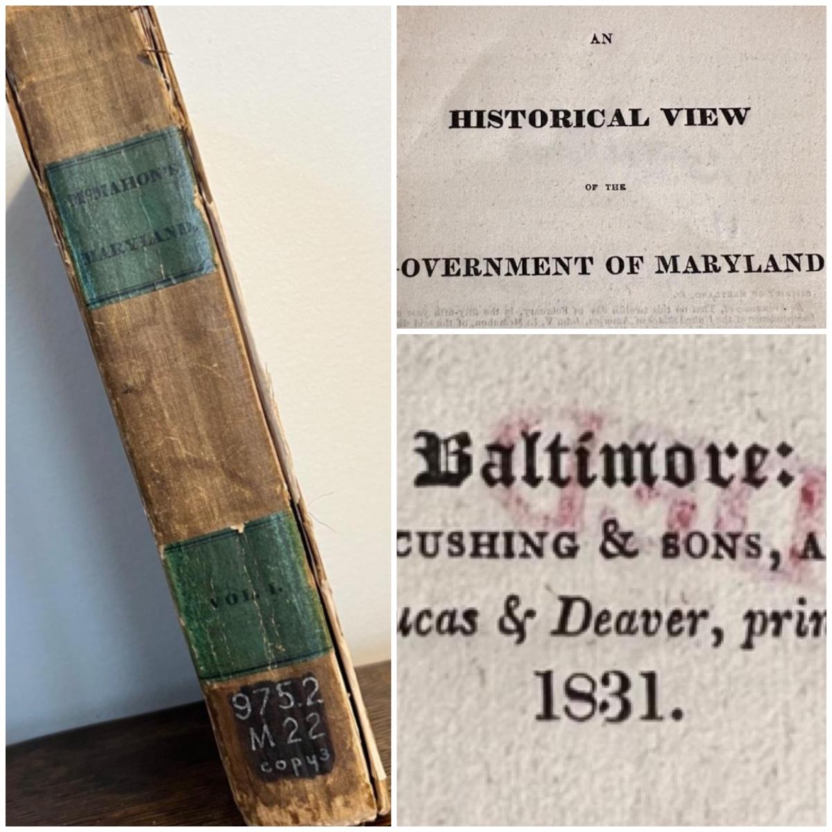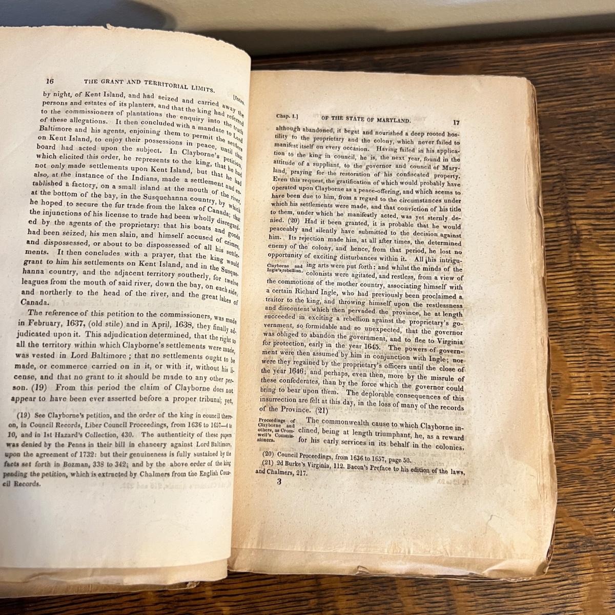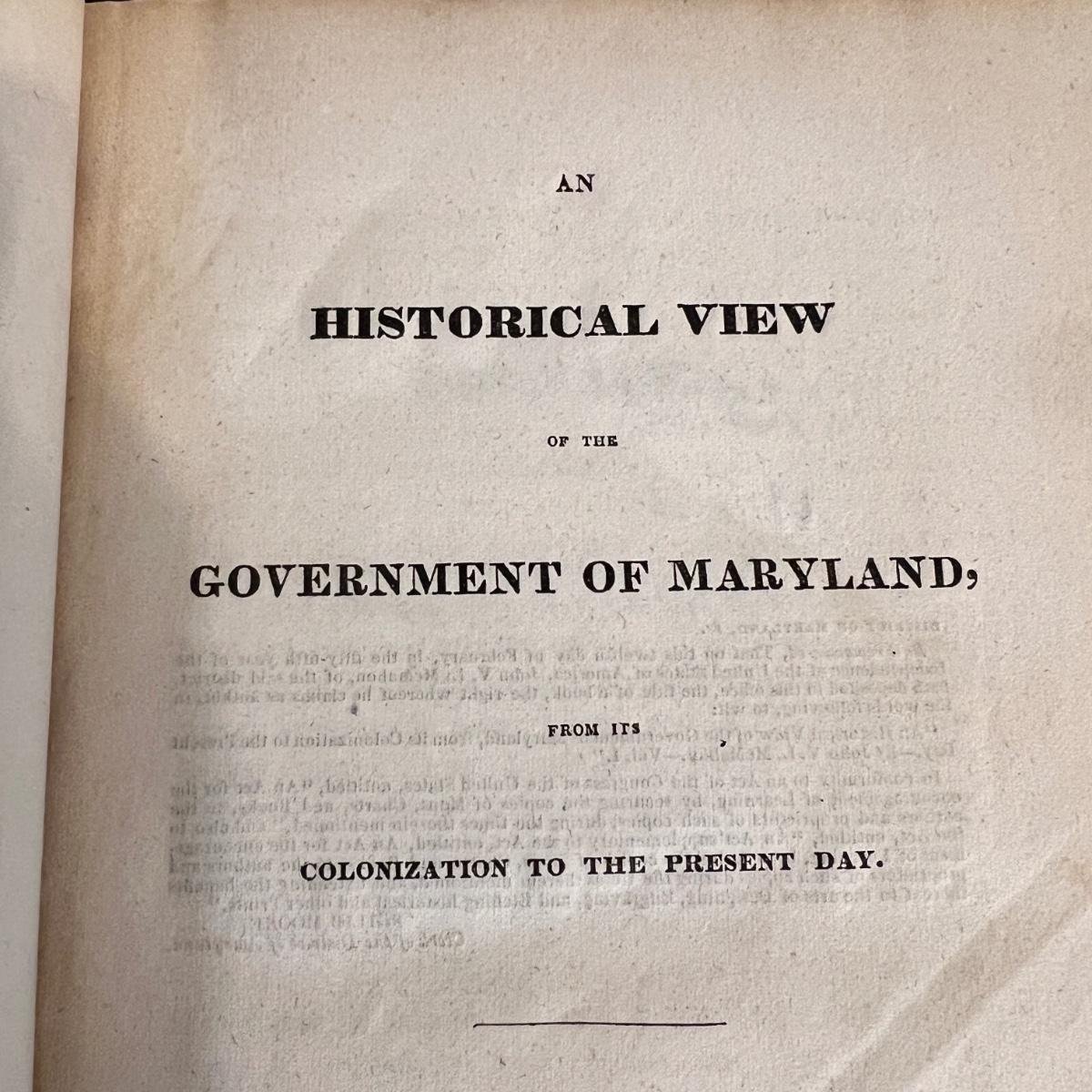 c. 1831 Historical View of the Government of Maryland Antique Book