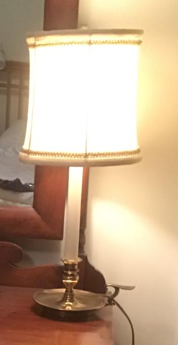 Antique Candle Stick Brass Lamp - measures 21.5” Tall