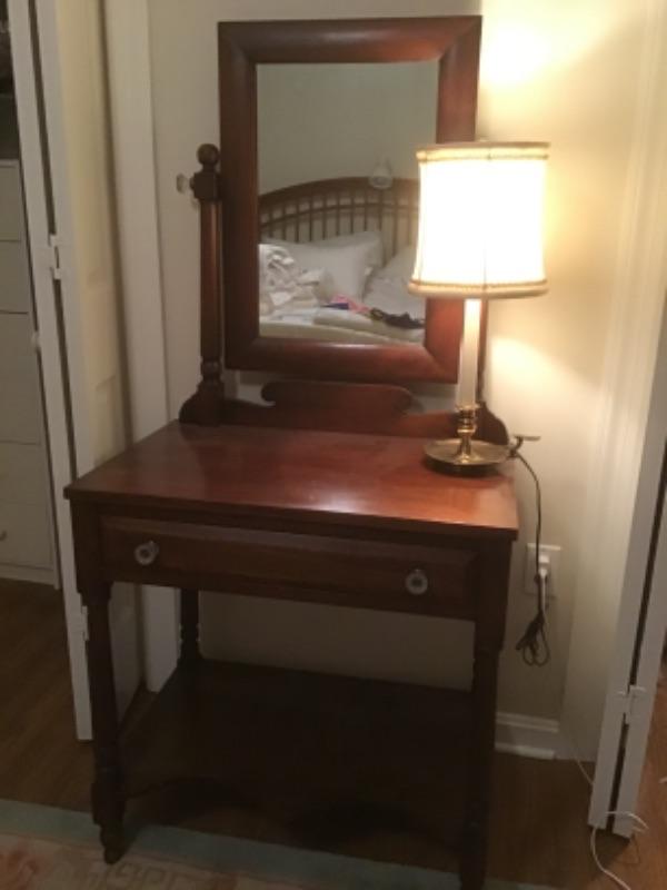 Beautiful Antique Dressing Table with Original Glass Knobs and Mirror -