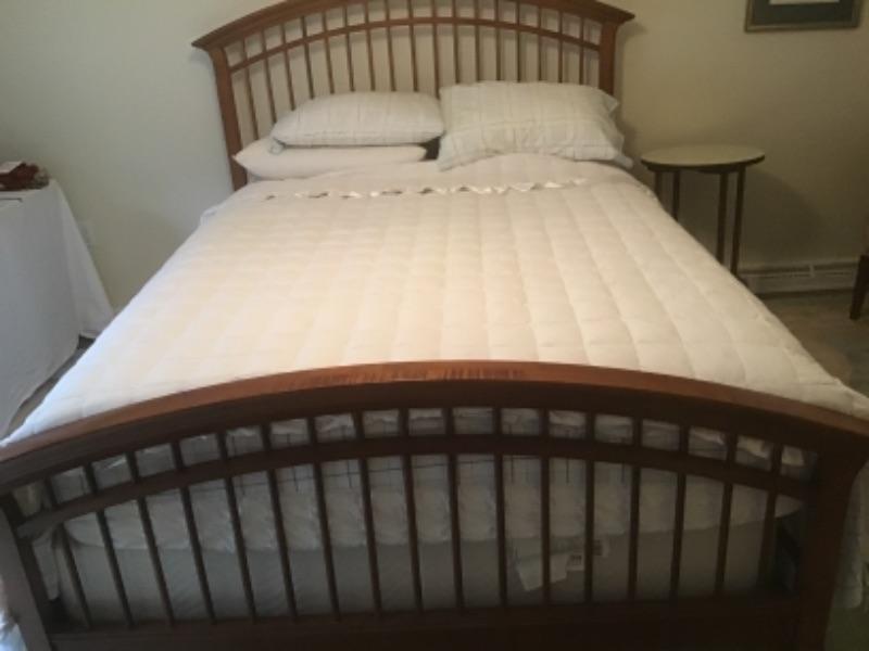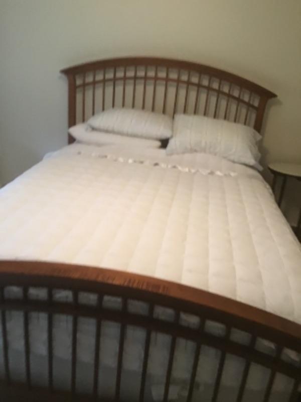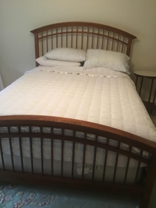 I - 502  Queen Size Wooden Framed Bed & Bedding