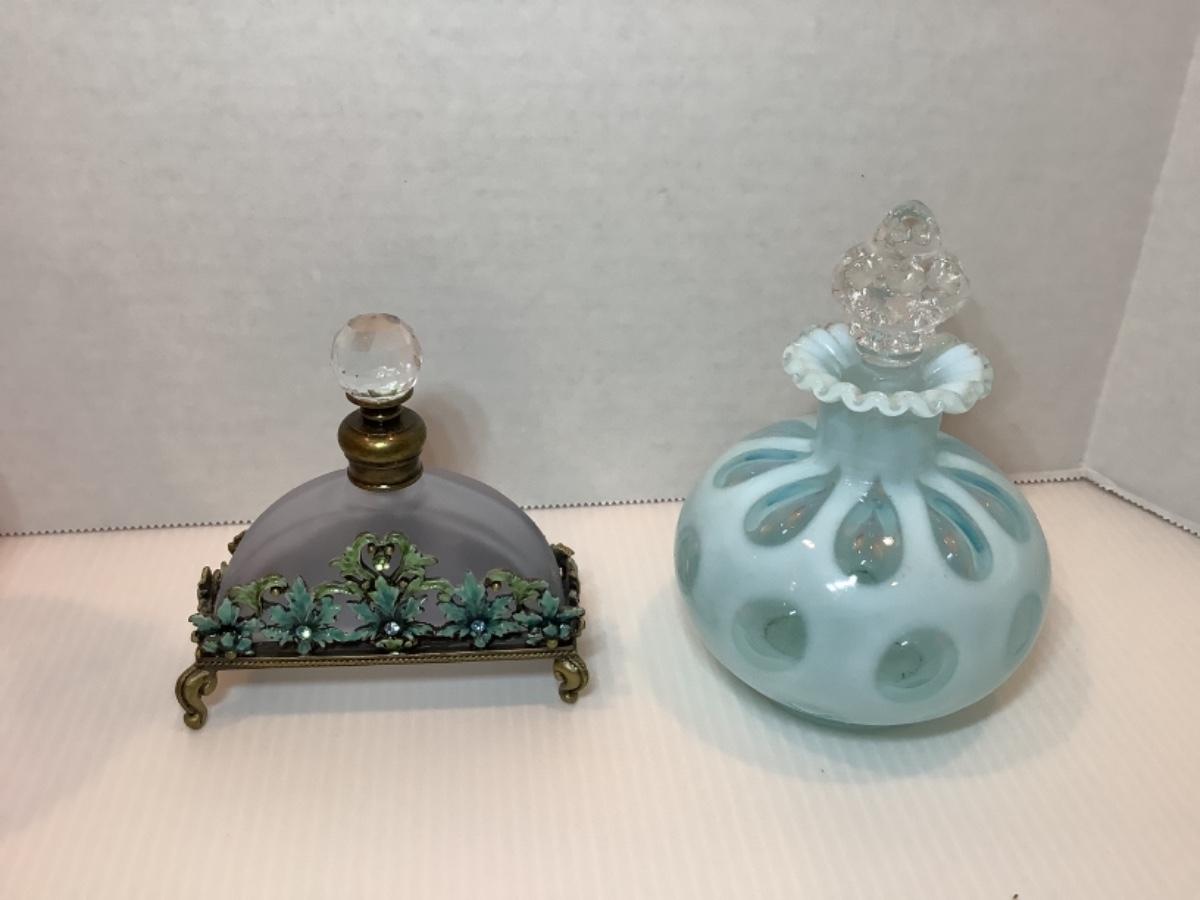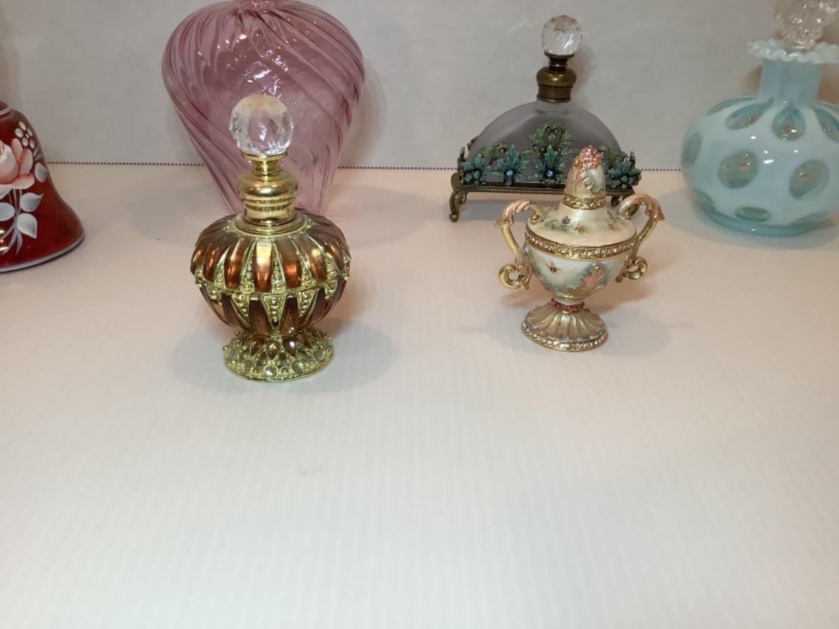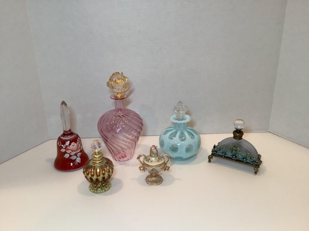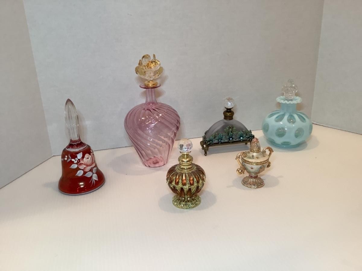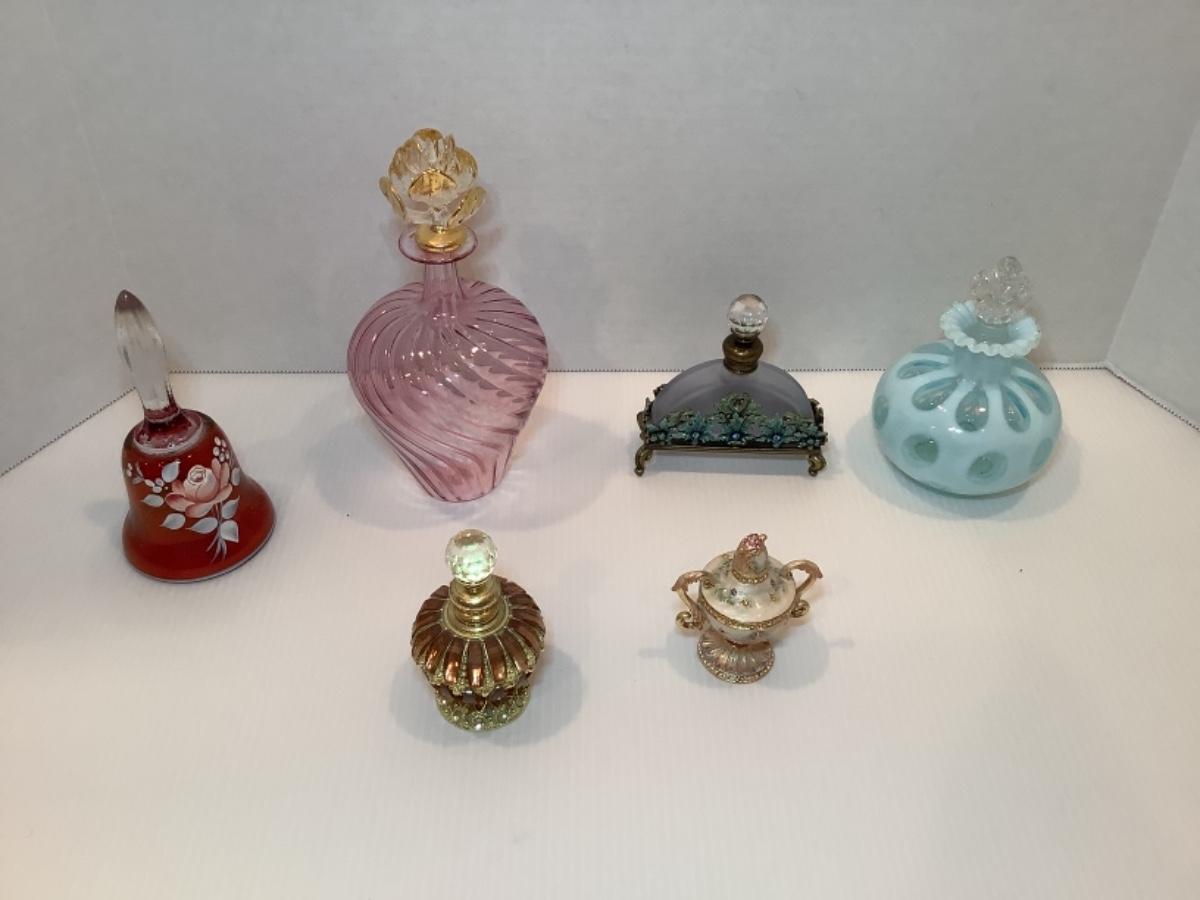 I. 668. Lot of Antique Perfume Bottles & One Signed Bell