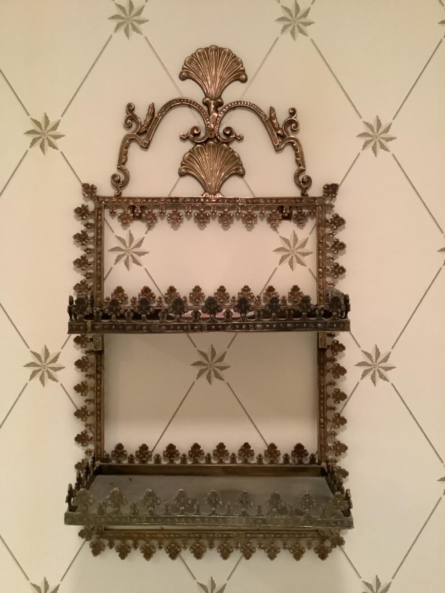Antique Brass Wall Shelf - has 2 Removable Shelves