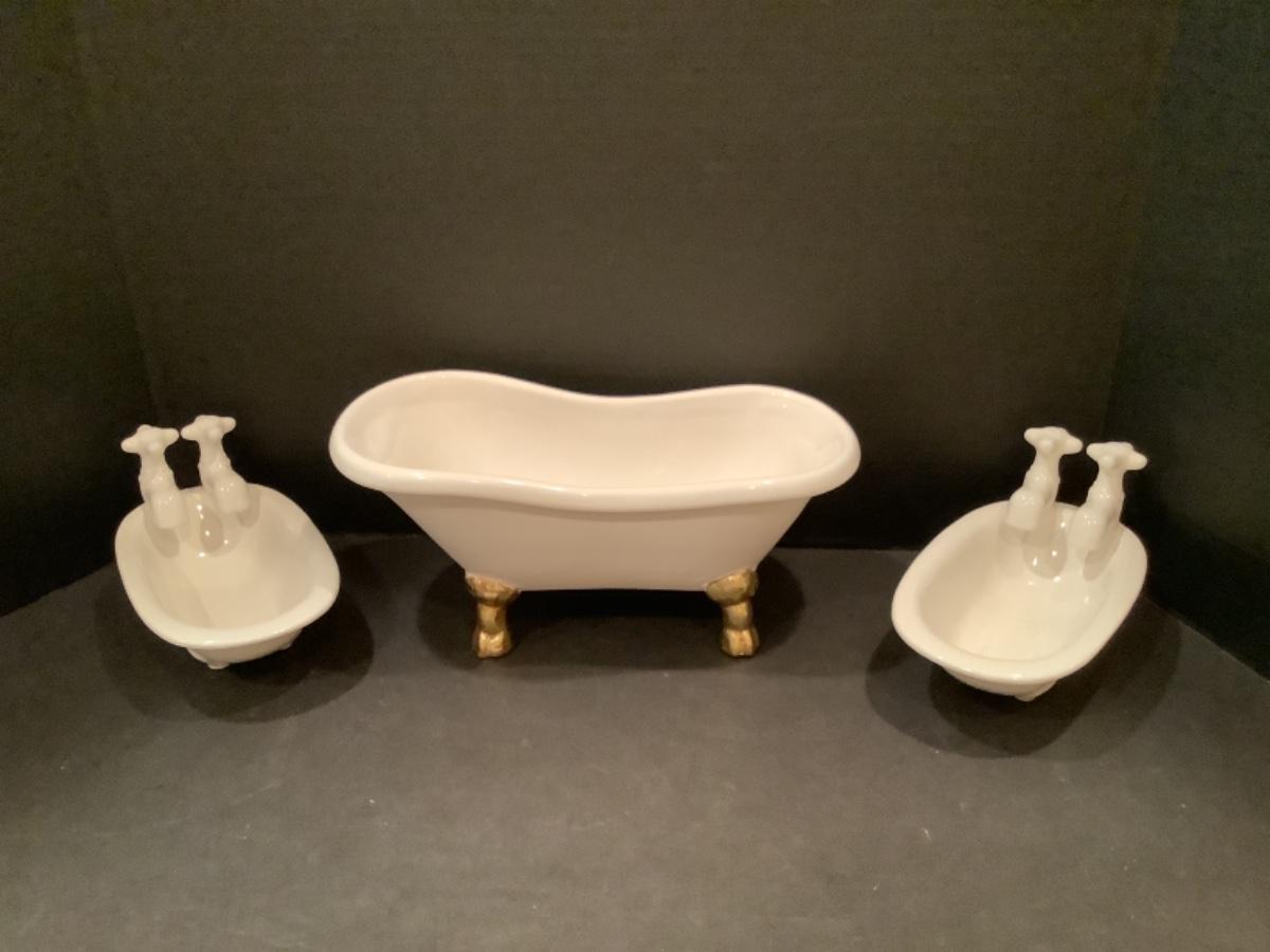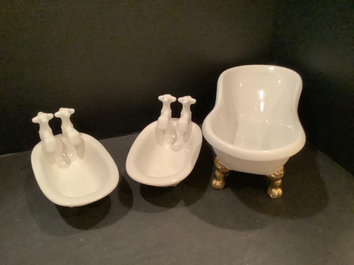 I 670  Lot of Three Porcelain Decorative Bath Tubs