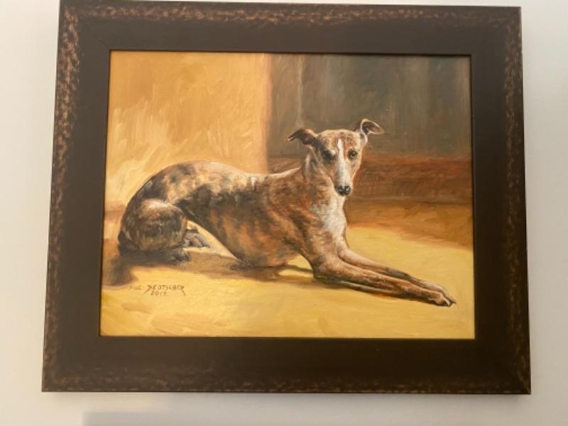 SIGNED Original Oil Painting by Sue Deutscher Oof Whippet Dog,