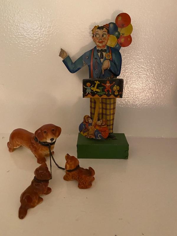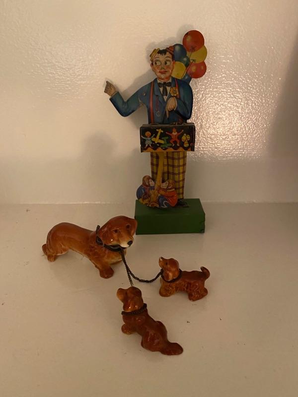 I - 750. Antique Wind Up Toy & Goebel Porcelain Dogs