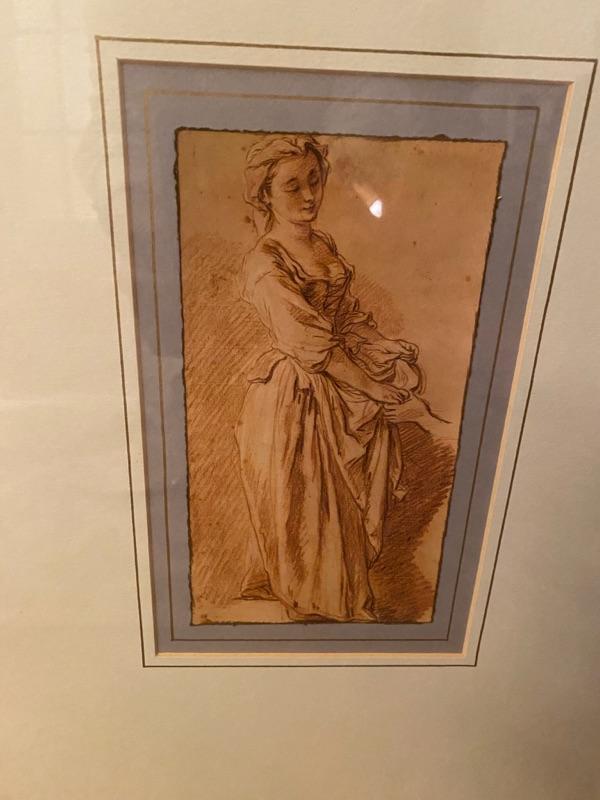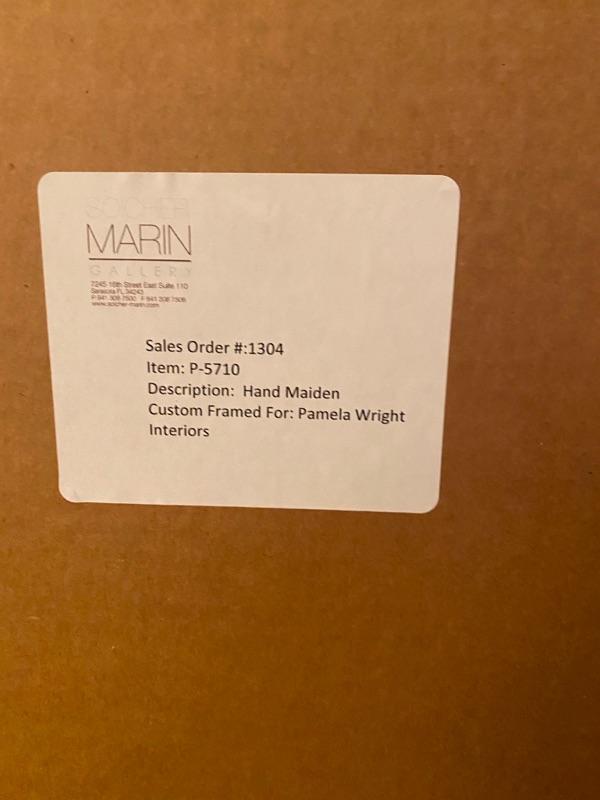 1 ) Framed Hand Maiden. - 21” Tall x 13” Wide