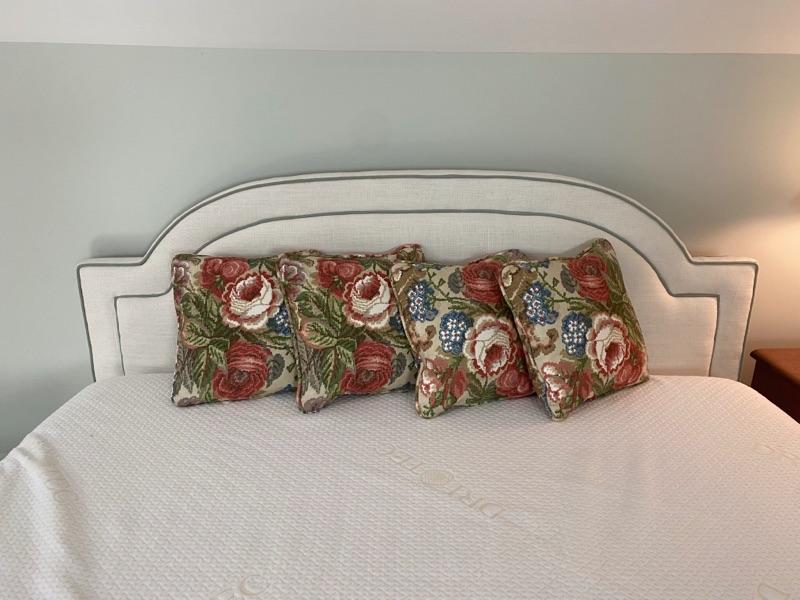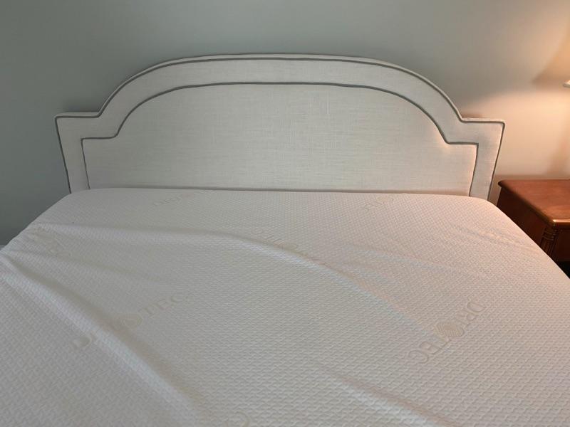 I - 792 Queen White with Green Piping Upholstered Headboard