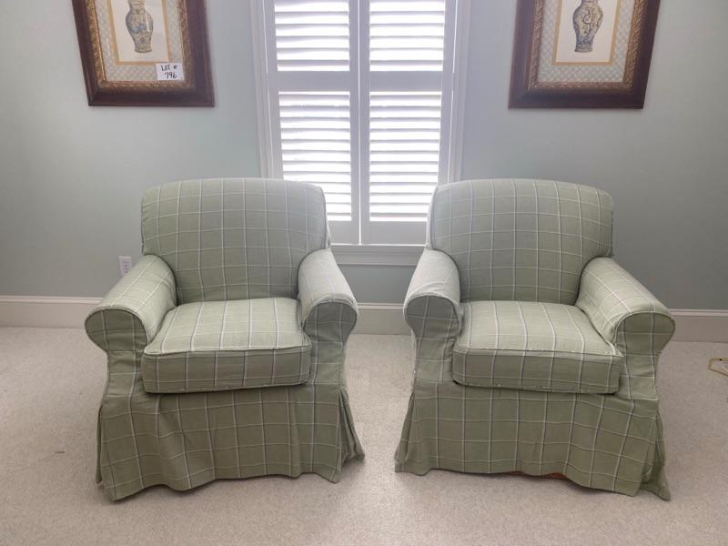 I - 793 Pair of Upholstered Club Chairs by Kravitz with slipcovers