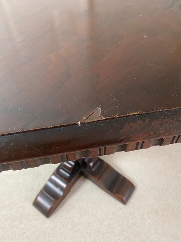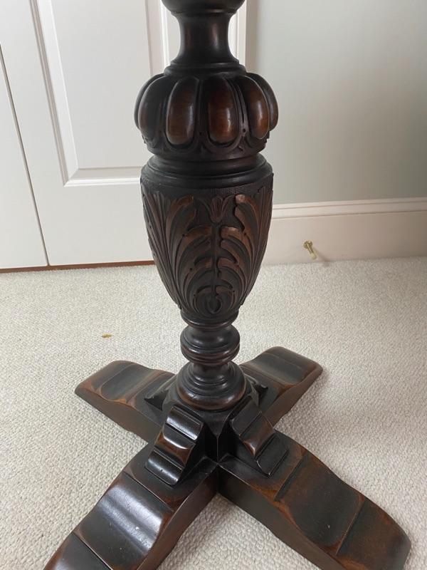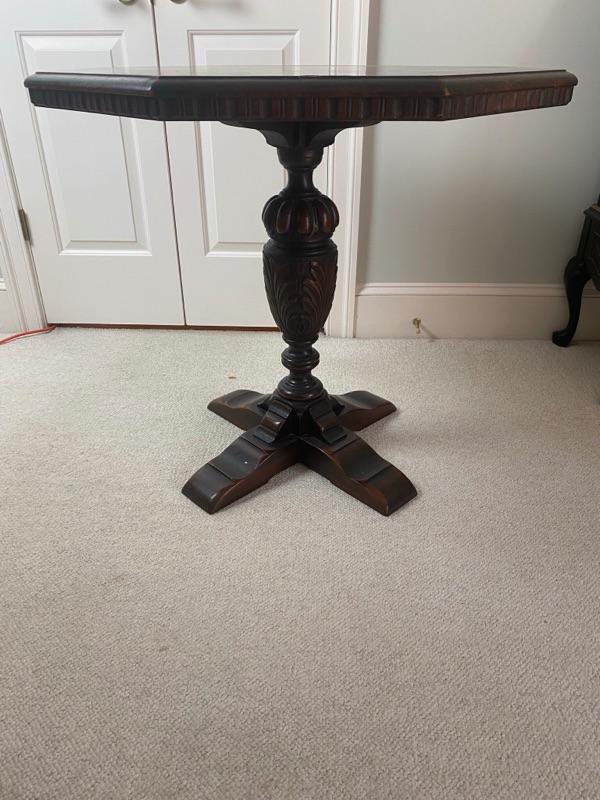 I - 794 Octagon Shaped Veneered Carved Base Pedestal Table