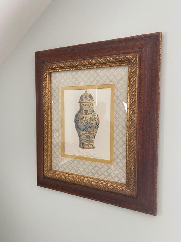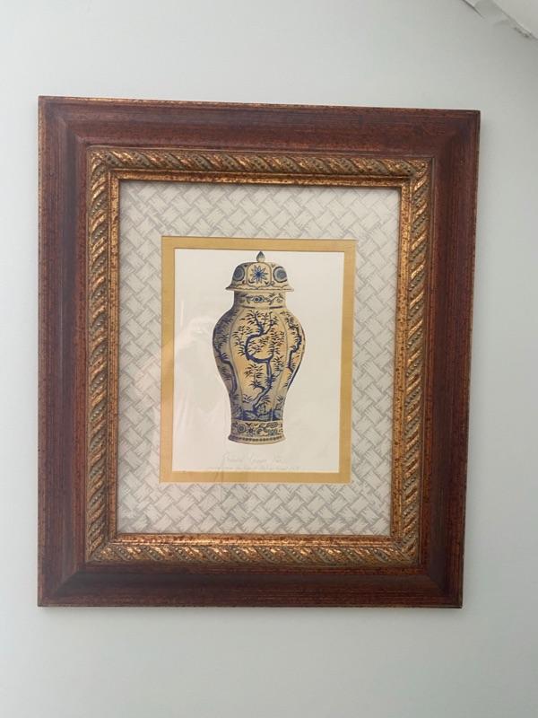 I - 796 Pair of Yellow/Blue Ginger Jar hard Engraved Copper Plate Transfer Framed Prints by John Richards