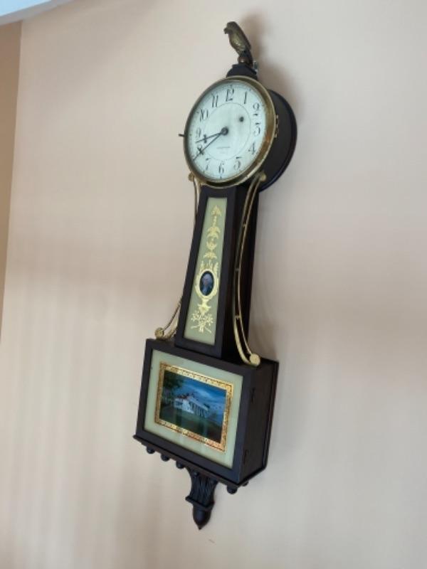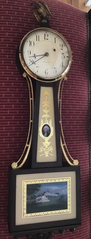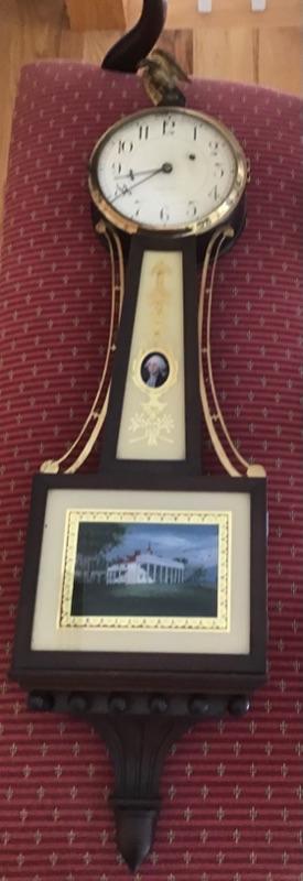 Antique Waltham Banjo Clock with Reverse Painted Glass of Mt. Vernon George Washington,