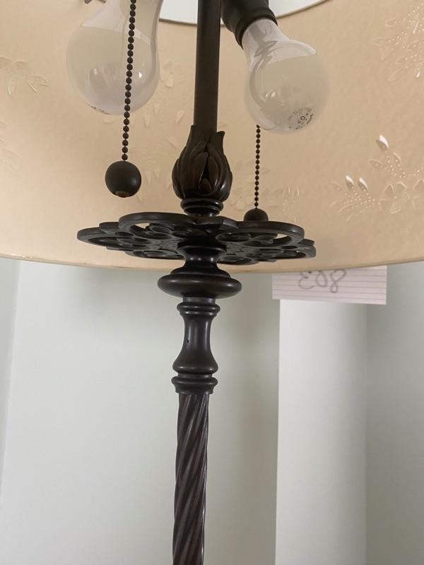 Antique Black Iron Lamp with Carriage Finial and two Pull Chains,