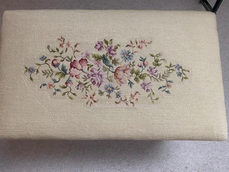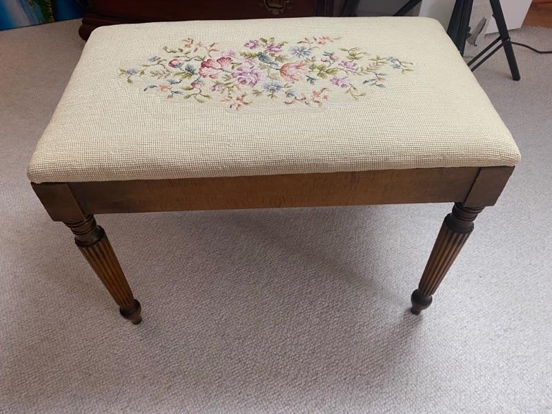 Petit Point and Needlepoint Upholstered Curly Maple Stool,