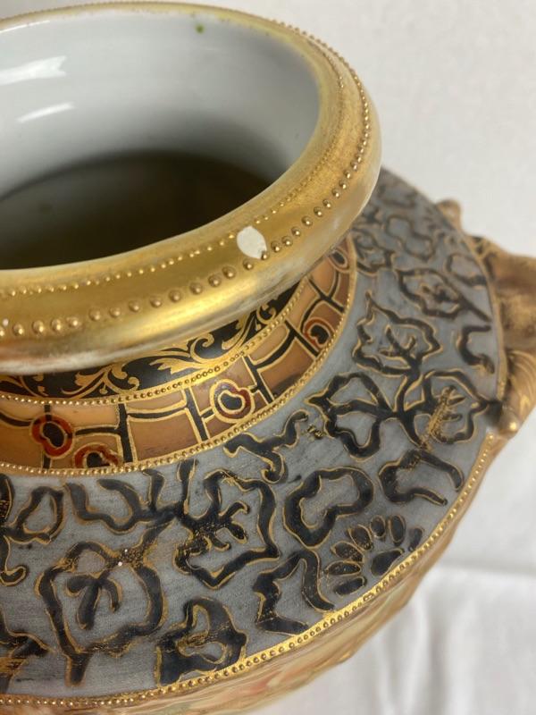 Vintage Hand Painted Nippon Floral Gold Ramshead Handle Vase,