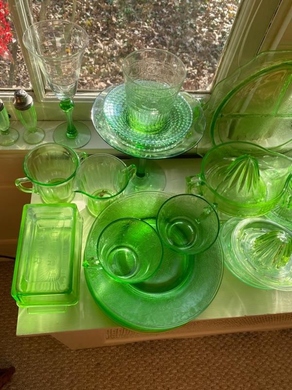 Lot of Beautiful Vintage Green Depression Glass