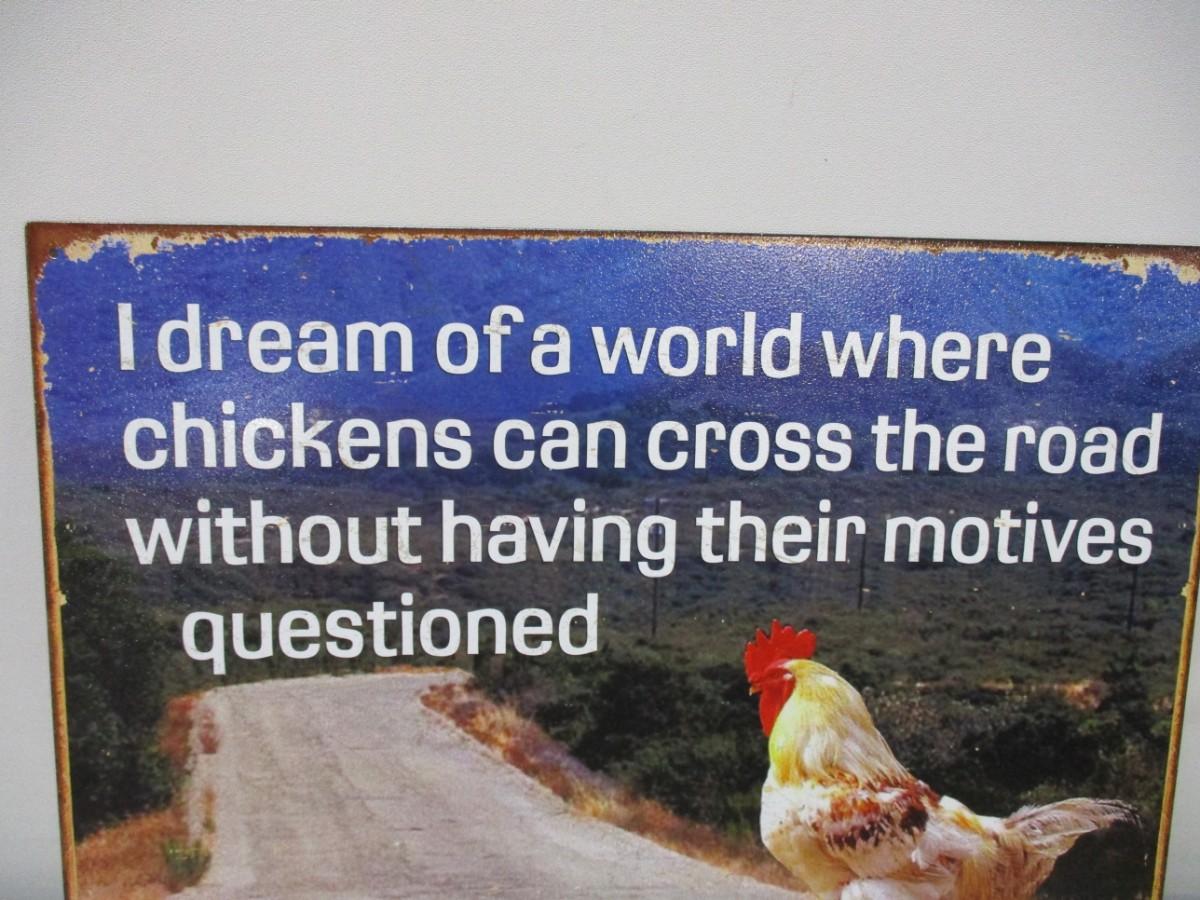 "I dream Of A World Where Chickens Can Cross The Road" Metal Sign