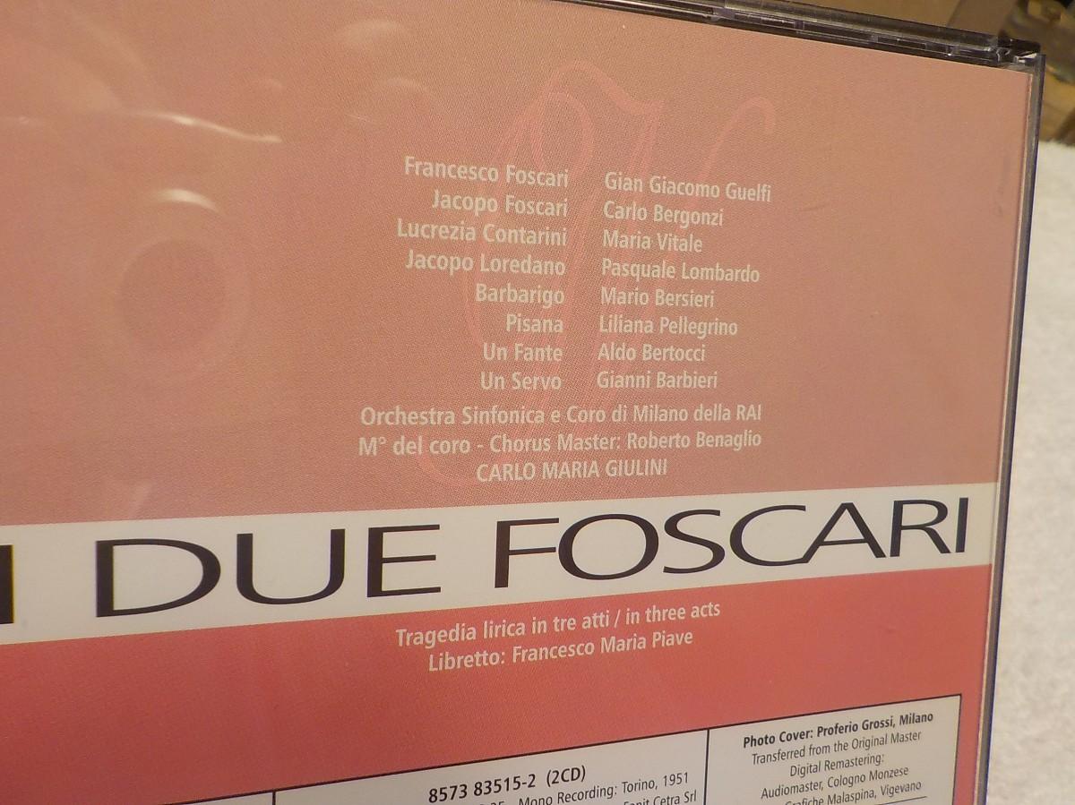 "I DUE FOSCARI". 2- CD'S , GIUSEPPE VERDI.