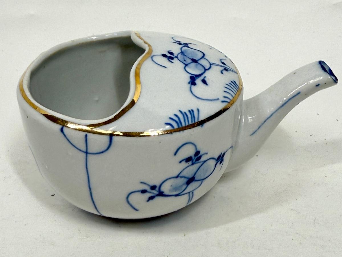 Invalid Sick Person Feeding Cup 1920s - Blue White Porcelain china 3"