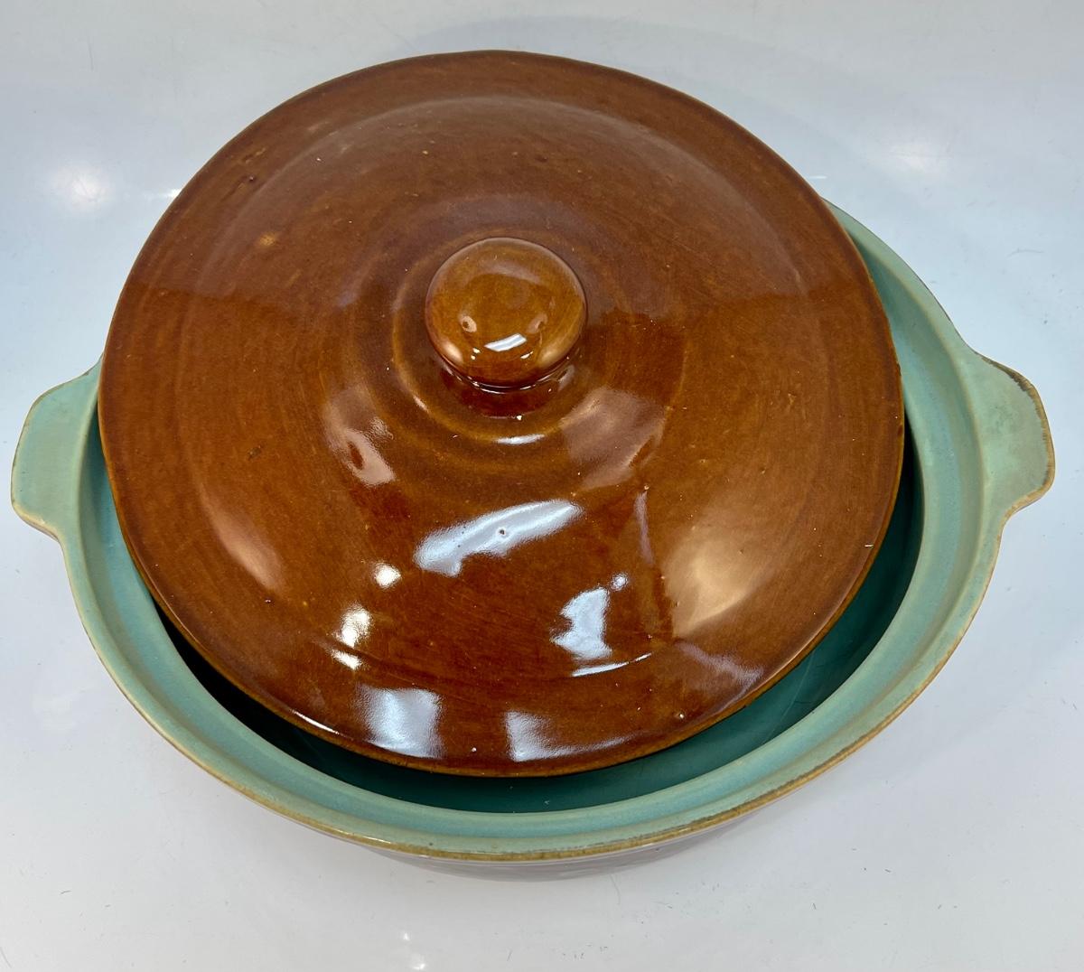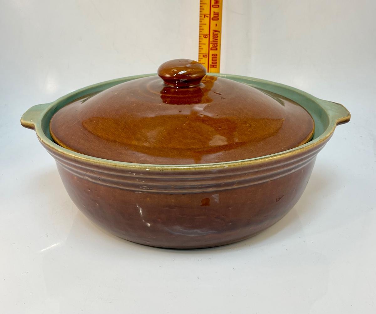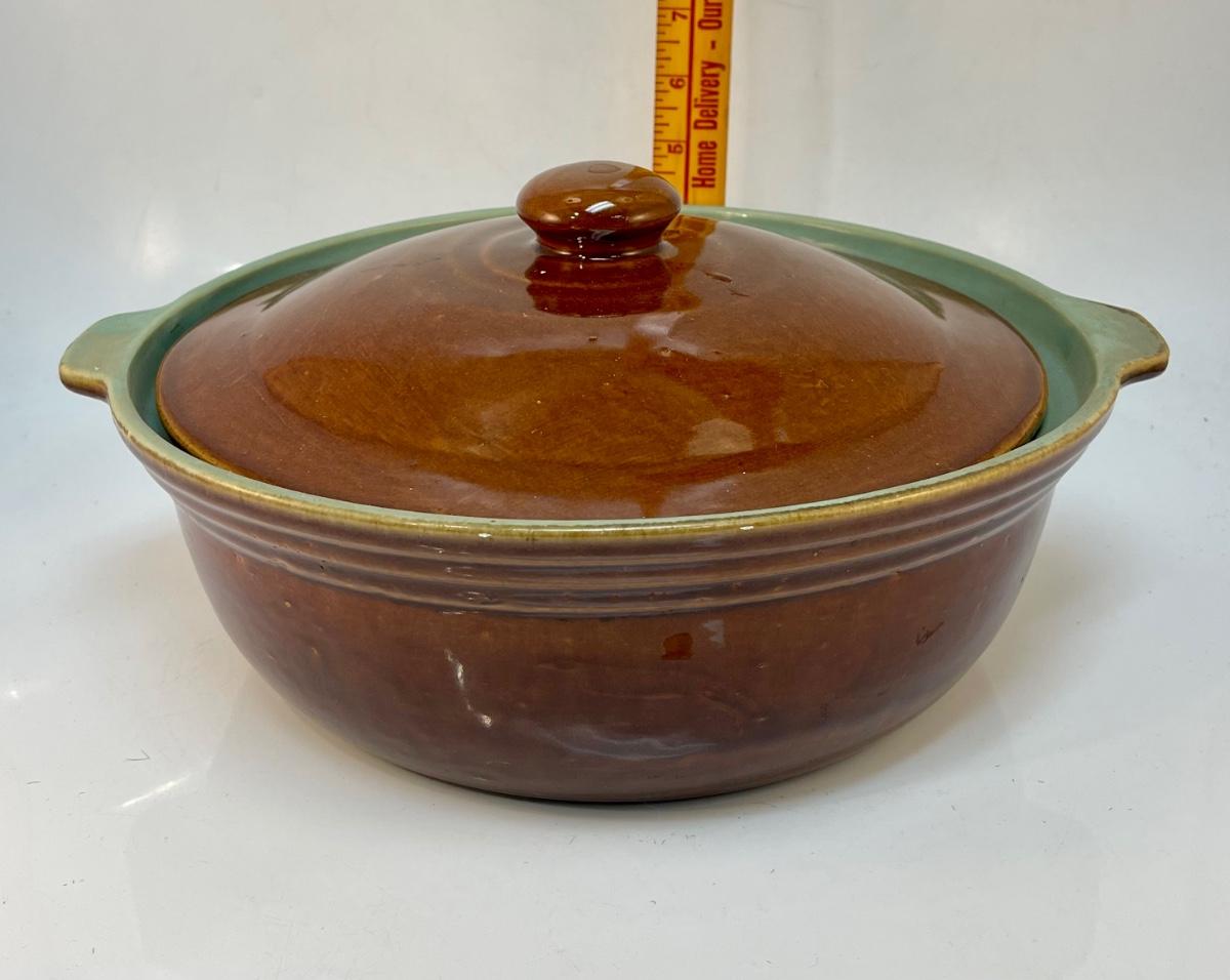 Mid-Century Zanesville Country Fare Large Brown & Green Lidded Casserole Baking Dish