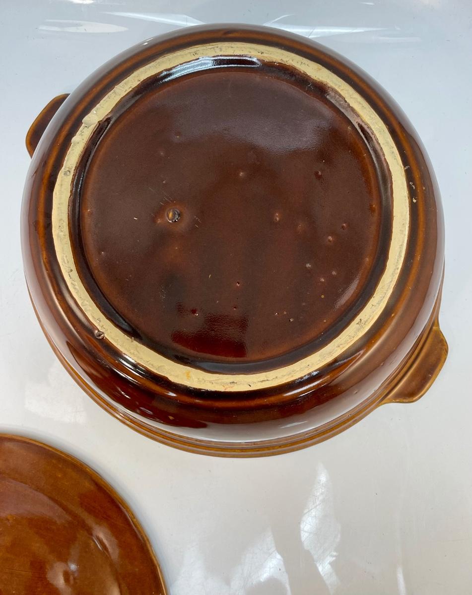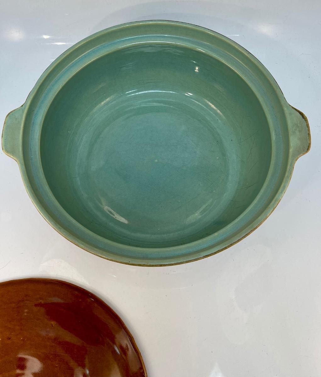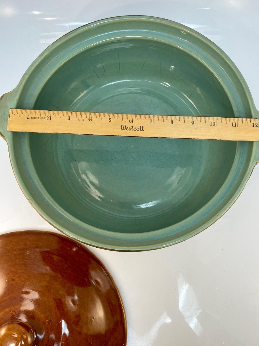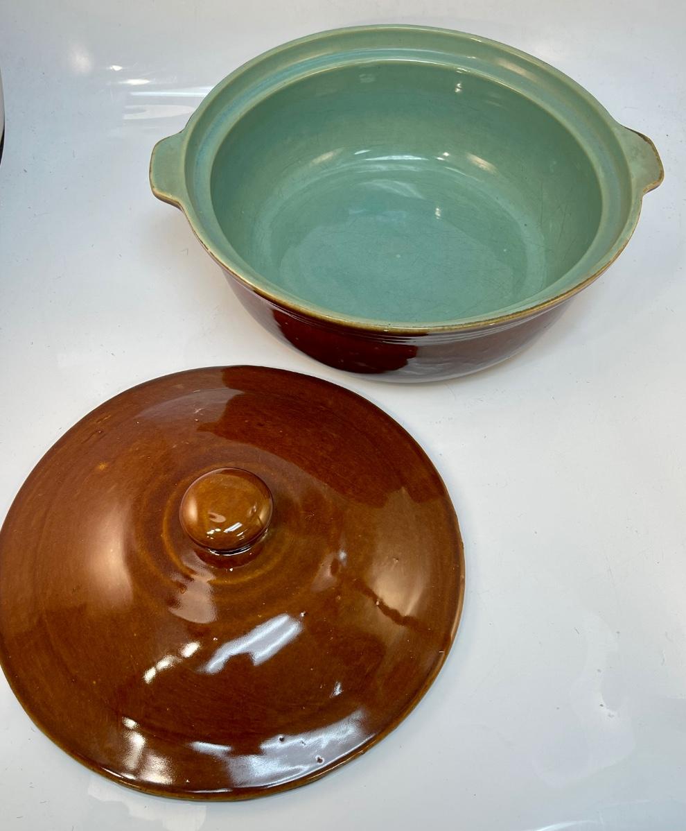 Mid-Century Zanesville Country Fare Large Brown & Green Lidded Casserole Baking Dish
