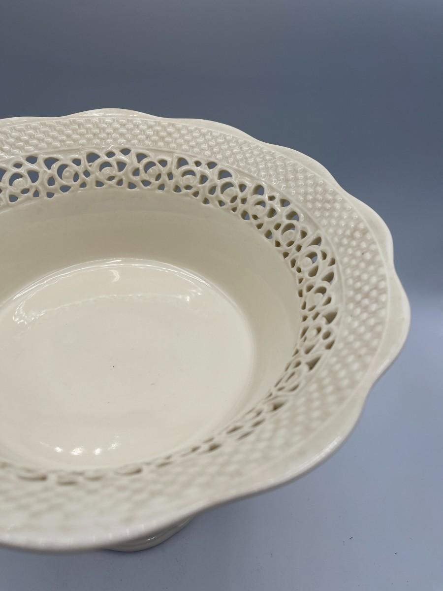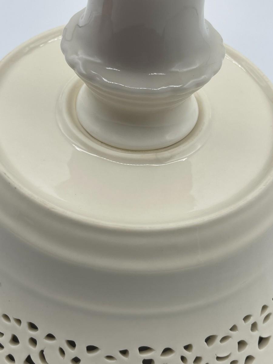 A simple silhouette, with cut work design, on this piece from Godinger hides a basket weave motif inside. 10" W at mouth x 8 H. Very good condition. No chips, cracks or crazing. # 862