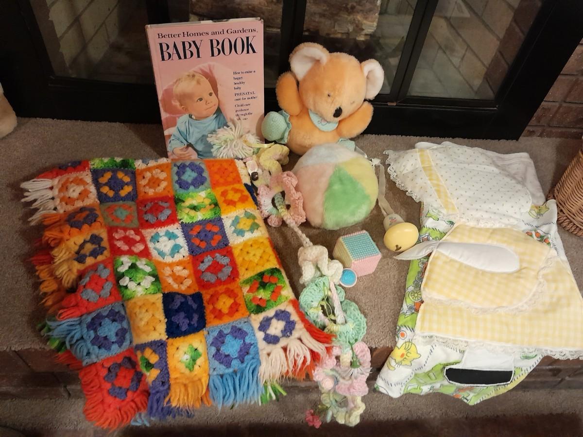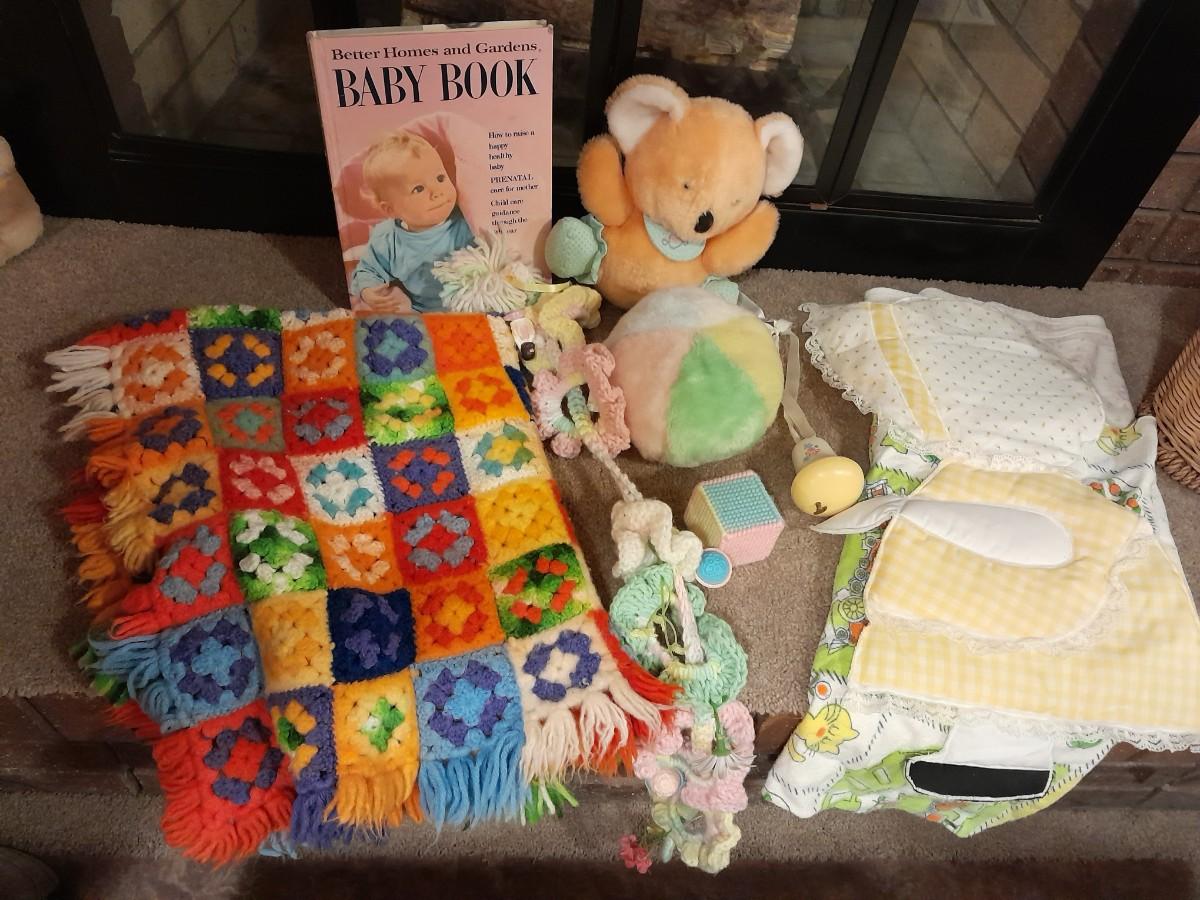 VINTAGE BABY BOOK, AFGHAN, BLANKET, AND NURSERY DECOR