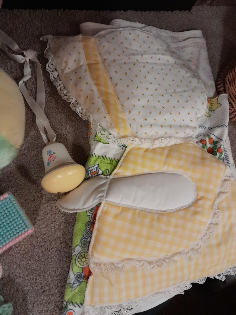 LOT 182 VINTAGE BABY BOOK, AFGHAN, BLANKET, AND NURSERY DECOR